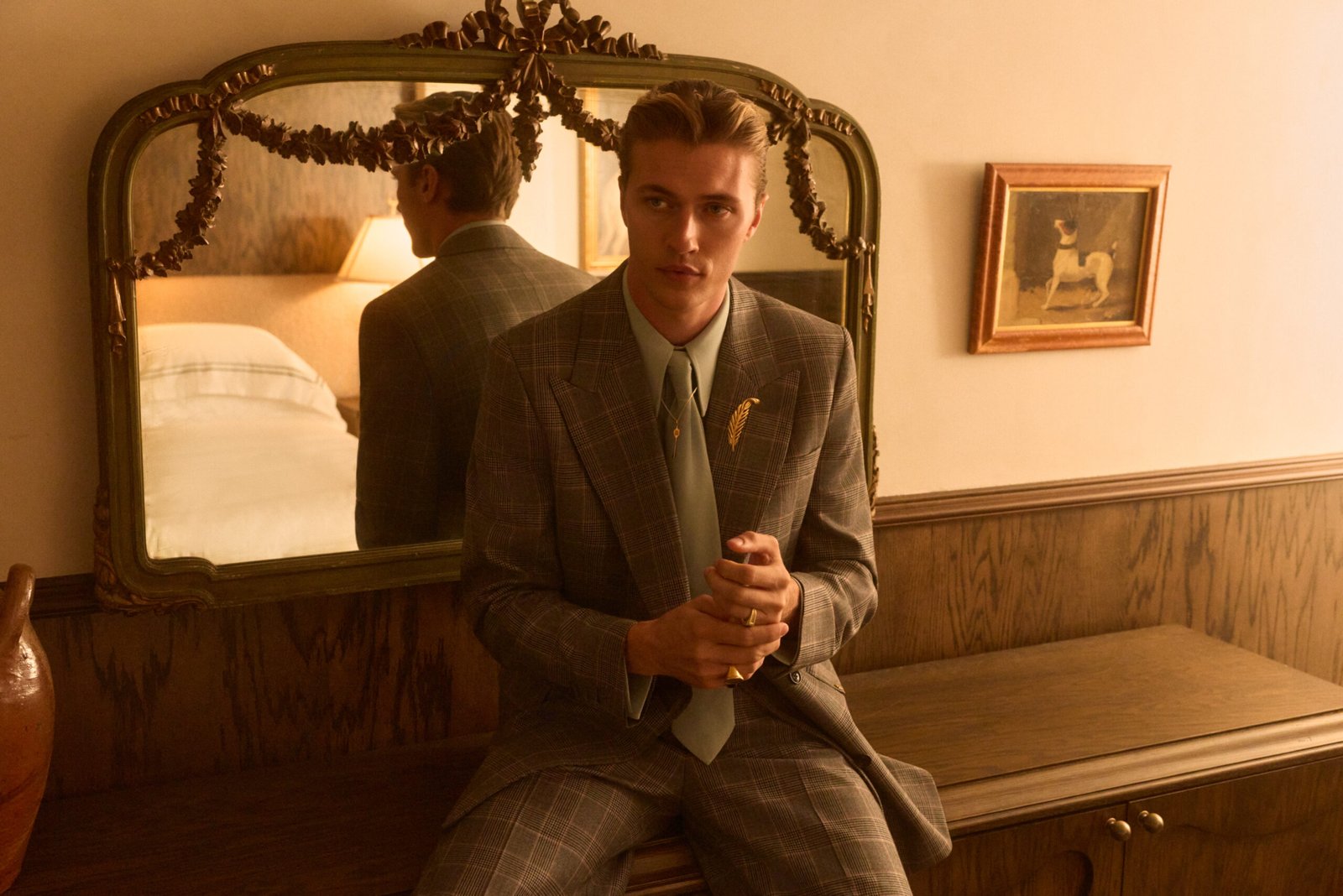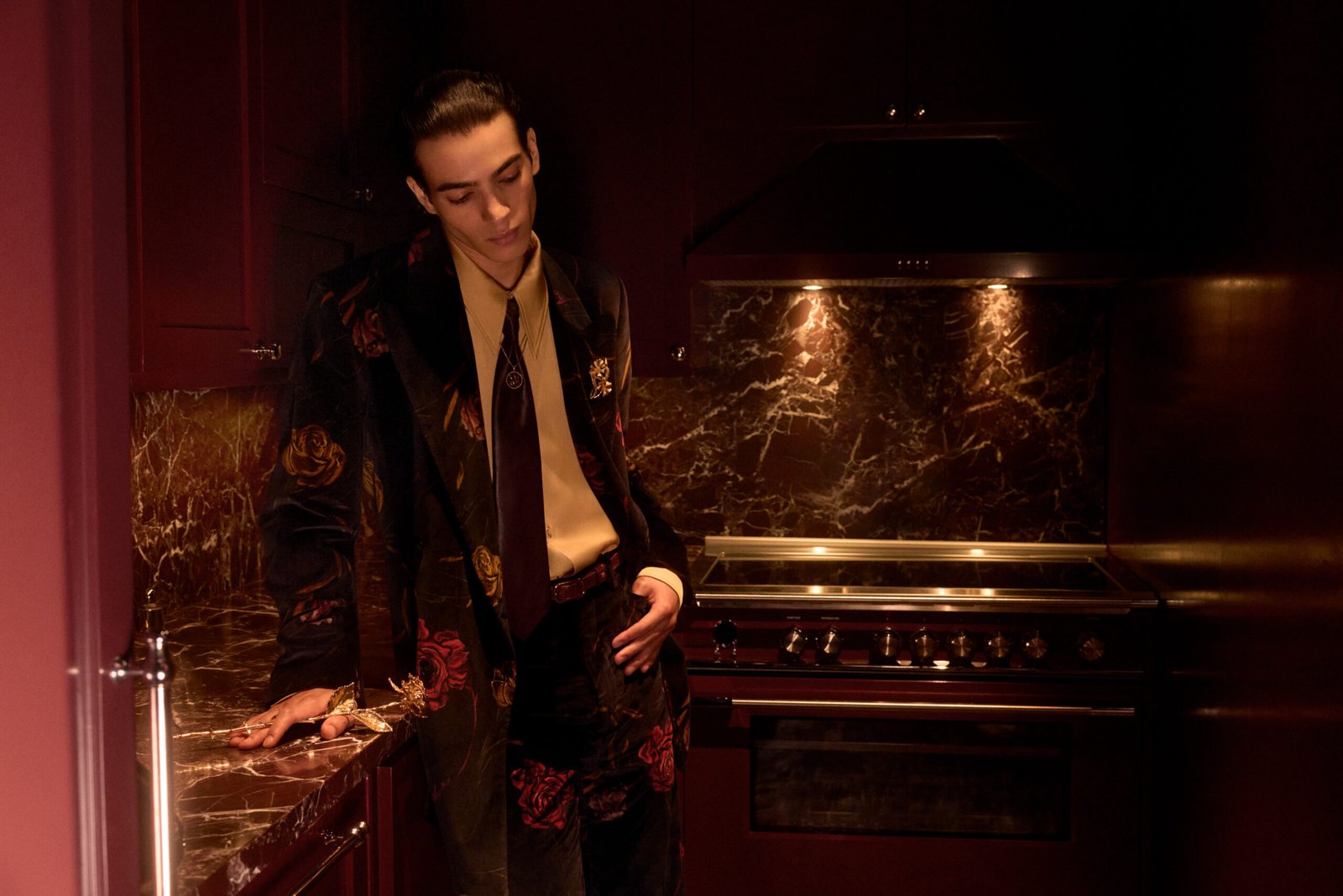 Anchoring the campaign is the iconic Hollywood Roosevelt Hotel, an art deco gem on Hollywood Boulevard steeped in cinematic lore. The hotel’s storied past breathes life into every frame, its corridors and suites filled with echoes of legends past and whispers of the present. The images trace lives lived between elegance and yearning—hotel rooms, limousines, dimly lit lounges—a universe suspended between celebration and solitude, the night before the morning after.