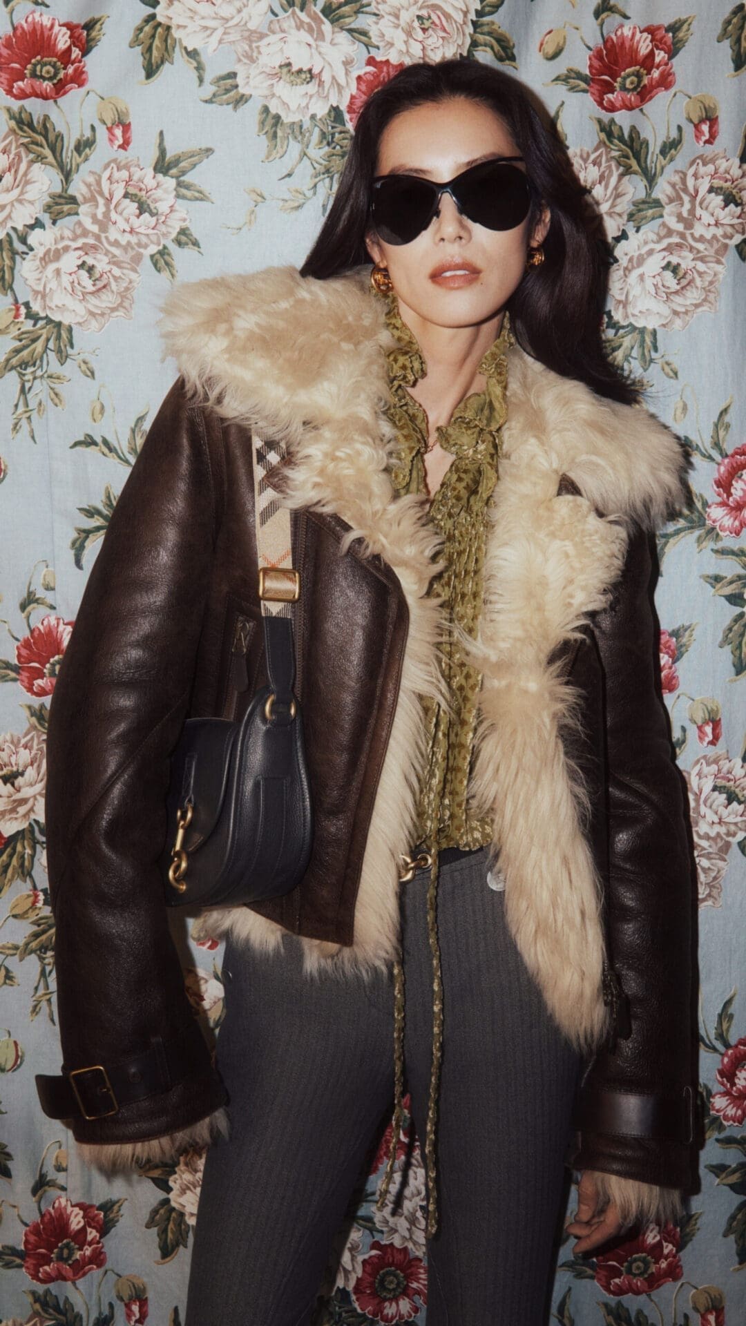 Textures play a defining role in Daniel Lee’s vision for Burberry Autumn/Winter 2025. Shearling aviators, wool-blend bombers, and down-filled puffers in Burberry Check express warmth with precision and elegance. The colour palette moves between the poetic and the practical — soft tones of clam and ice offset by Burberry’s signature beige, camel, and navy, grounded in earthy hues of clay brown, coal grey, and twilight blue.