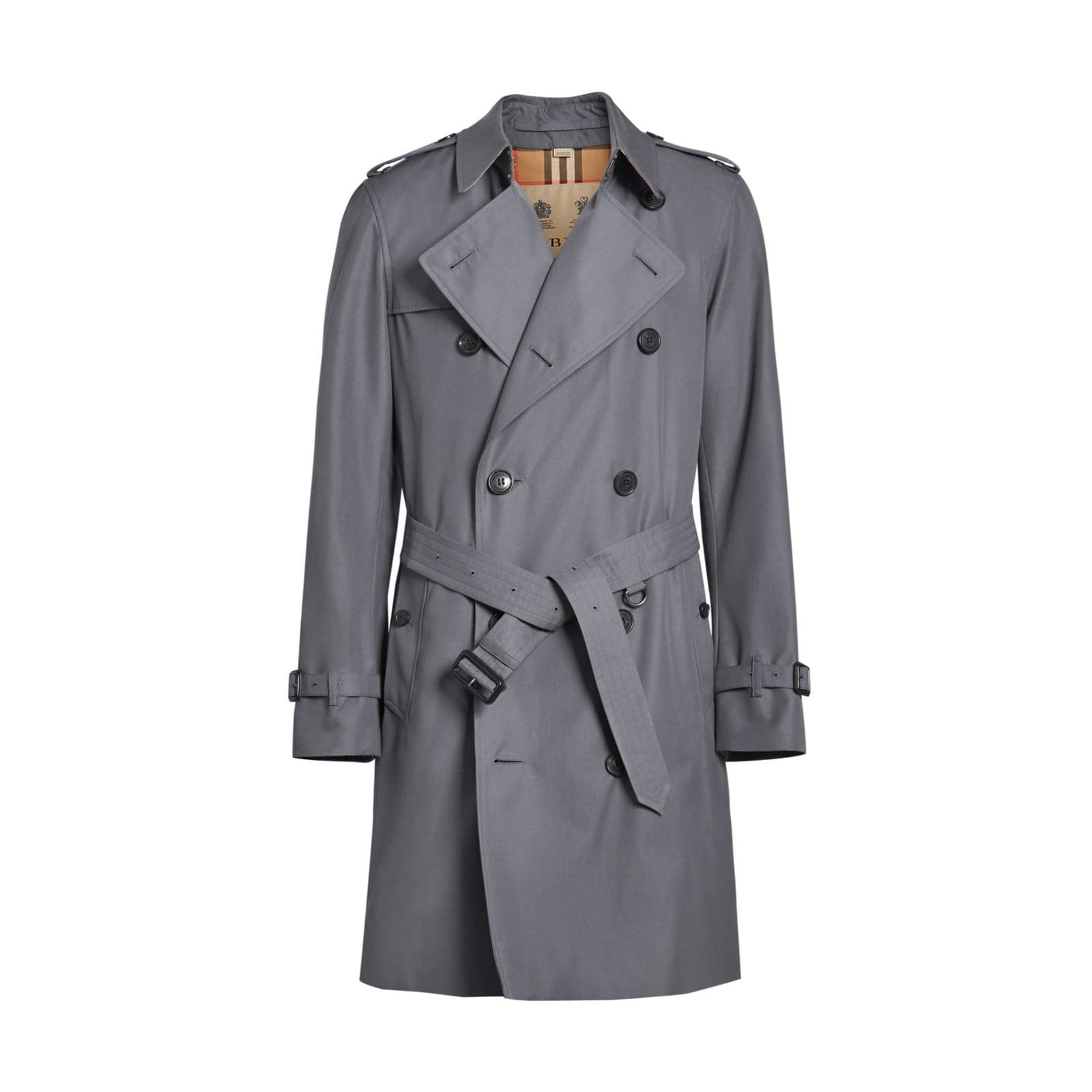 At Burberry’s Castleford factory in Yorkshire, a single trench coat goes through 127 processes from start to finish and is made using the signature gabardine fabric invented by the fashion house’s founder Thomas Burberry in 1879. The antique yellow vintage check lines on the coat are carefully cut and placed by hand for a symmetrical and unbroken design. The intricate stitching of the collar which involves 180 stitches takes a year alone for a specialist tailor to master.