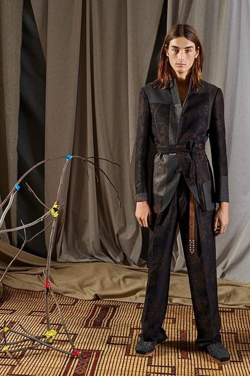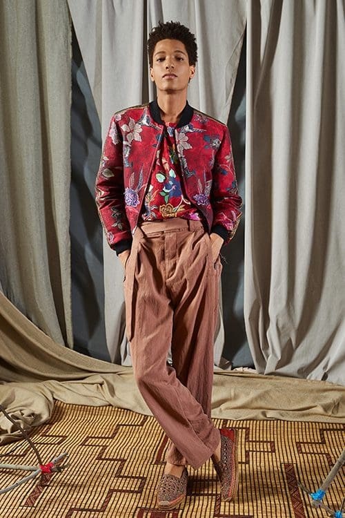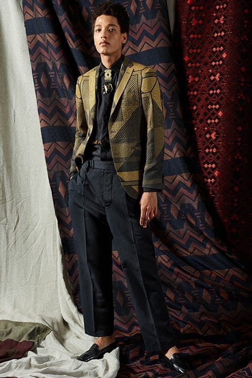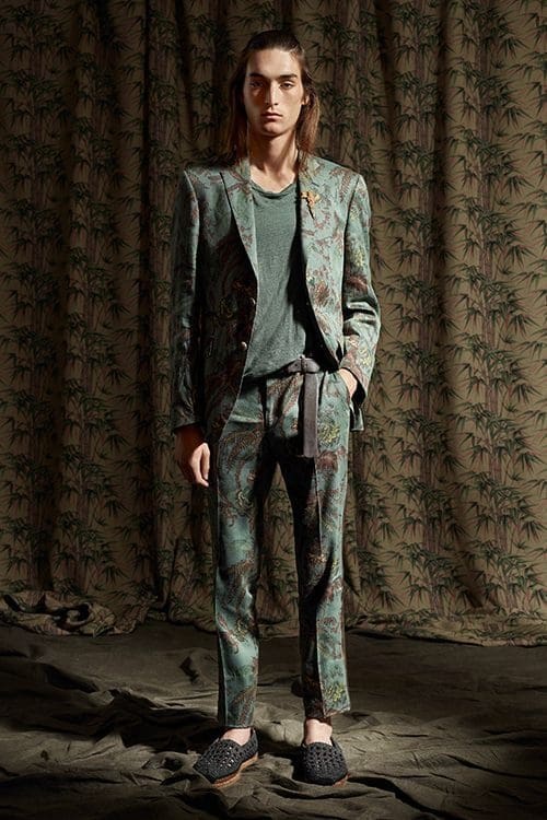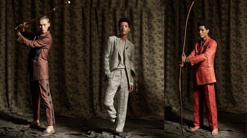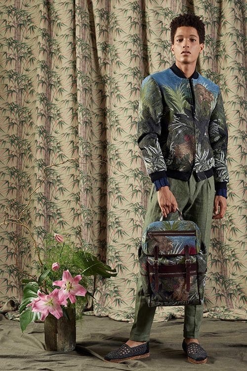 Sustainable textiles take centre stage in Etro’s spring summer 2019 collection. Natural fibres, vegetable dyes and local production have shaped a collection beholden to the visual cultures of Southeast Asia, Africa and Japan. Inspiration for the deeply rich patterns comes from the complex motifs of Iban cloth from Borneo, Batik dyed fabrics from Indonesia and colorful West African wax prints. Bamboo, a pillar of the collection, is explored for its connection to Japanese martial arts traditions.
