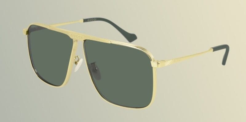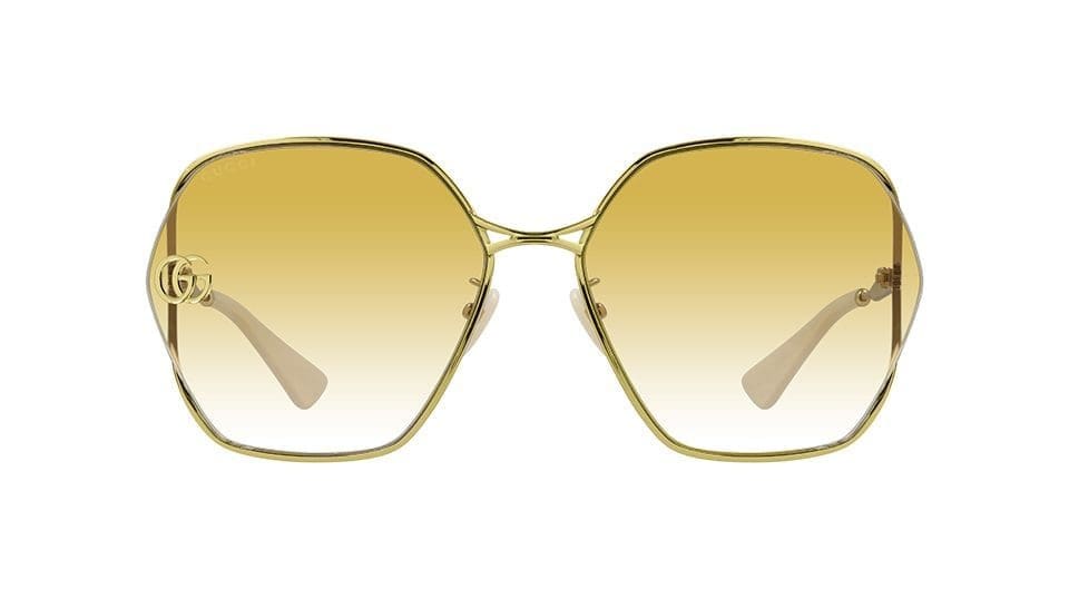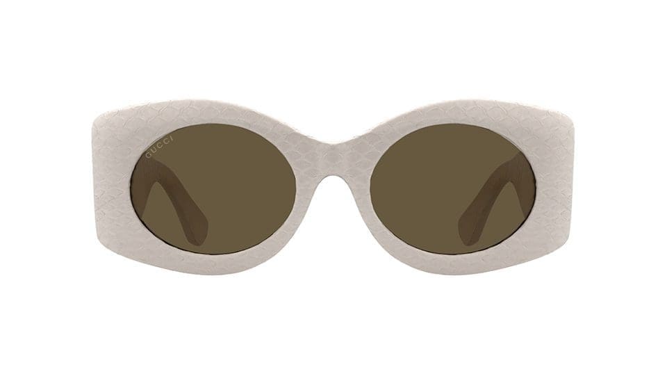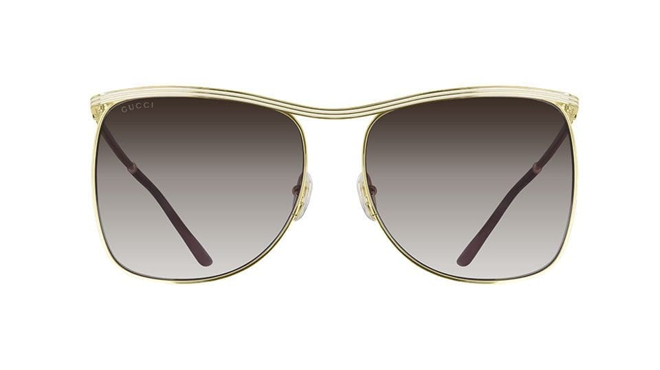 Design details from Gucci accessories are reinterpreted on some styles, including the matelassé chevron-quilted leather pattern of the Marmont handbags and Web stripe in enamel finishes on lightweight metal. Other retro-inspired models reveal the classic with the unexpected: Gucci-logoed metal plaque and coloured nose pads.
