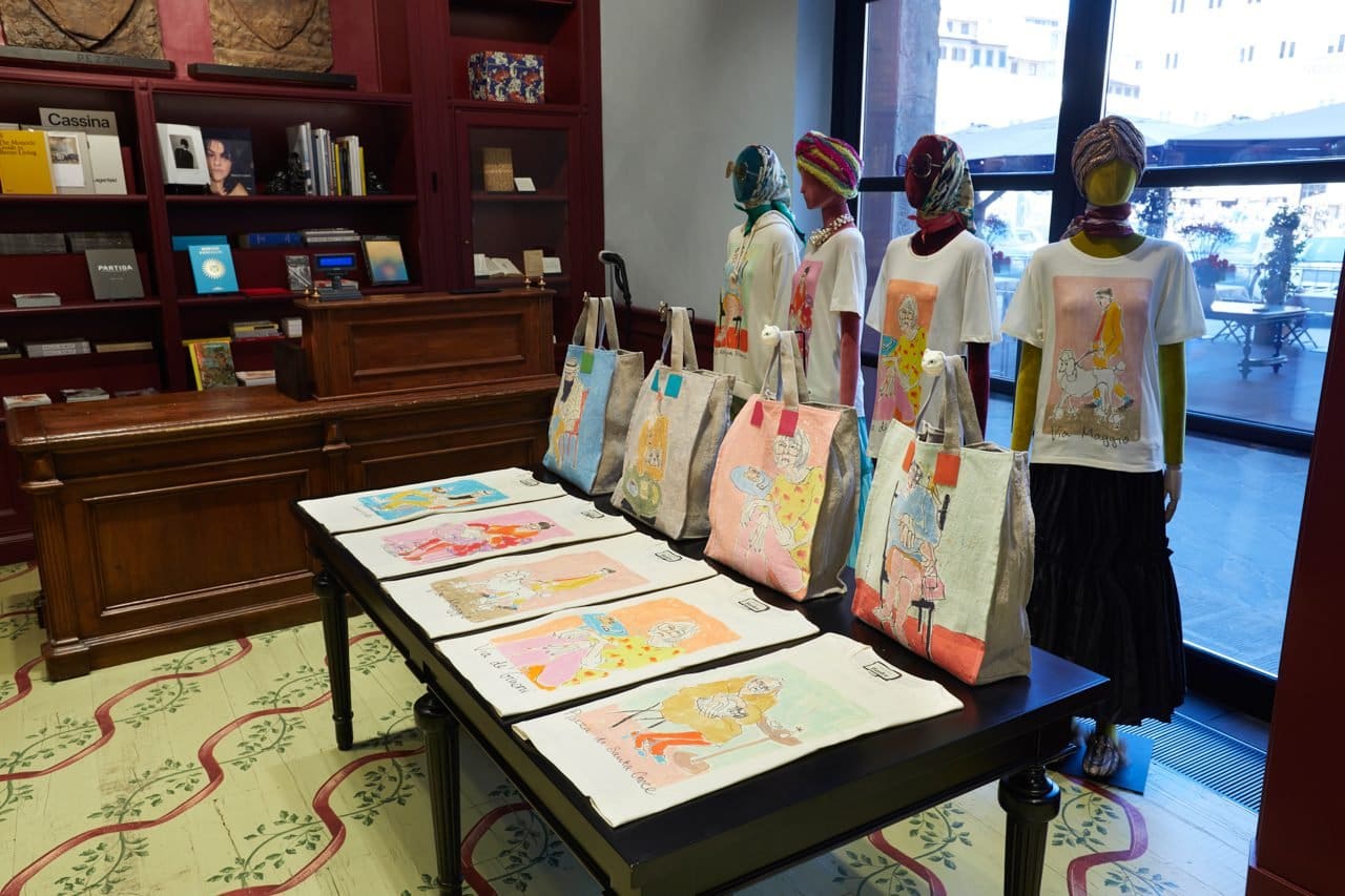 The most exclusive among these is the new collection of clothing and bags featuring the works of London-based artist Isabella Cotier. Her “distinctive, playful, colourful, faux-naïve illustrations,” based on her “observational drawings of the eccentric local characters of Florence that she made while sitting in the cafés, markets and streets of the city,” have been applied to a range of sweatshirts, hoodies, T-shirts and tote bags. The collaboration with Cotier is just the latest in a series of partnerships planed by Gucci Garden.