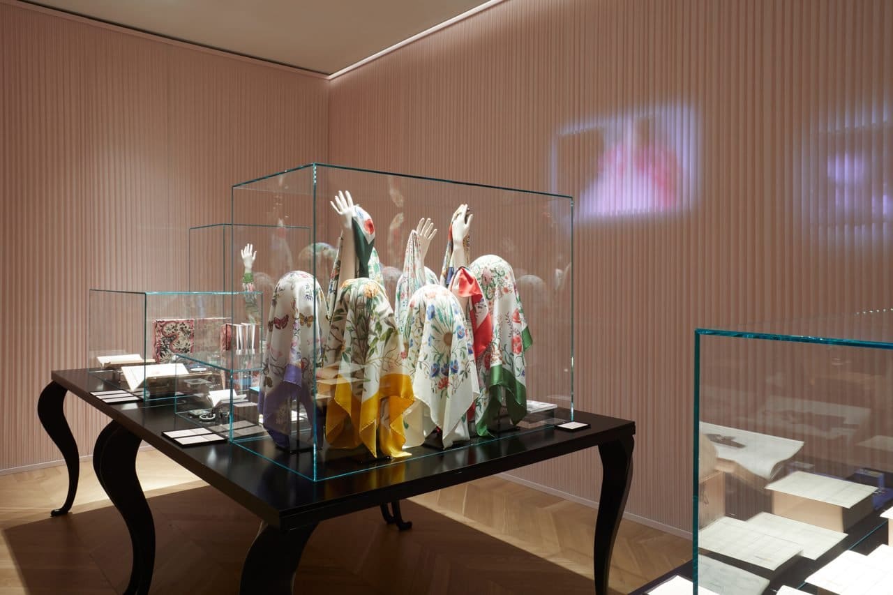The other permanent exhibitions of the Gallery include a room displaying vintage and contemporary renderings of the Gucci logo; a room exploring Gucci’s recurring motifs such as the horsebit and the red-green-red stripe; a 30-seat Cinema da Camera on the first floor which screens different episodes of “Zeus Machine,” a film cycle dedicated to Hercules; and a space to display clothes, accessories, and objects that explore “Alessandro Michele’s penchant for the iconography of animals and gardens.”