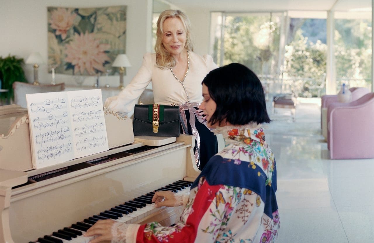 Inspired by the life of the rich and famous in Hollywood, Gucci’s campaign for their signature handbag, the Sylvie, displays the high life of a mother and daughter clad head-to-toe in Gucci. The sun-drenched backdrop of palm-lined avenues and Beverly Hills’ Rodeo Drive serve as a setting for the new campaign shot by Petra Collins. Creative Director Alessandro Michele tapped none other than multi-award-winning actress Faye Dunaway and French singer, songwriter and actress SoKo to play the mother-daughter duo.