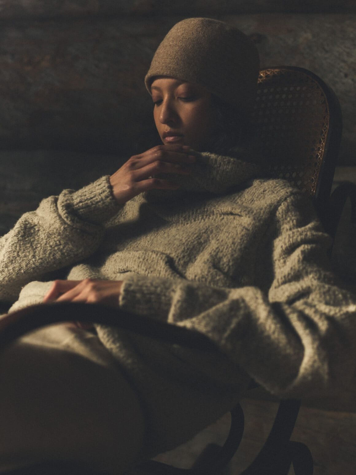 - For Her: Oversized alpaca hats, cashmere scarves, and bouclé Rebecca ballerinas.