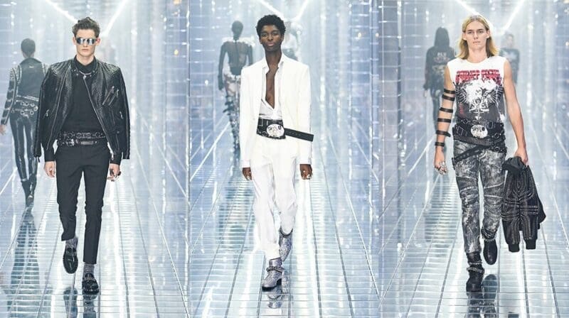 Philipp Plein has kicked off the 20th birthday celebrations of his namesake brand with two high-profile, limited-edition collaboration with Mansory, the luxury car modification specialist. One is the ‘Star Trooper’ AMG G63, and the other, a Billionaire branded Rolls-Royce Cullinan. This was followed by the SS19 collection as a tribute to one of his lifelong heroes, Michael Jackson, with a military-meets-Rock’n’Roll motif. It features some of Plein’s favourite fabrics like distressed leather, denim, shiny latex and gold-leafed python, embellished with paillettes, precious stones, fringing, studs, skulls and crystals in black and white gold.
