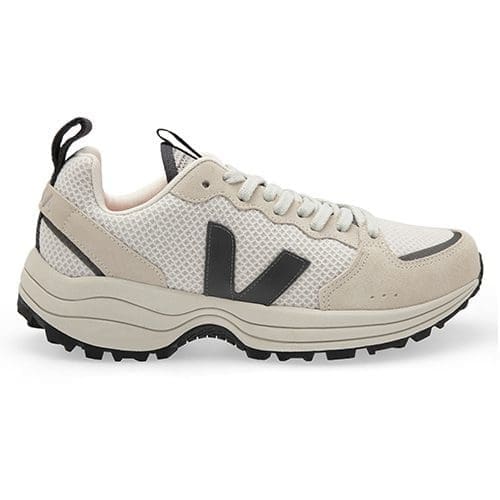 VEJA – Known to use eco-conscious materials, these ‘Venturi’ sneakers are cut from white mesh and have tonal suede and gray leather trims, a chunky wild rubber sole for better traction and support, a white lace-up front and the signature V applique on the sides.