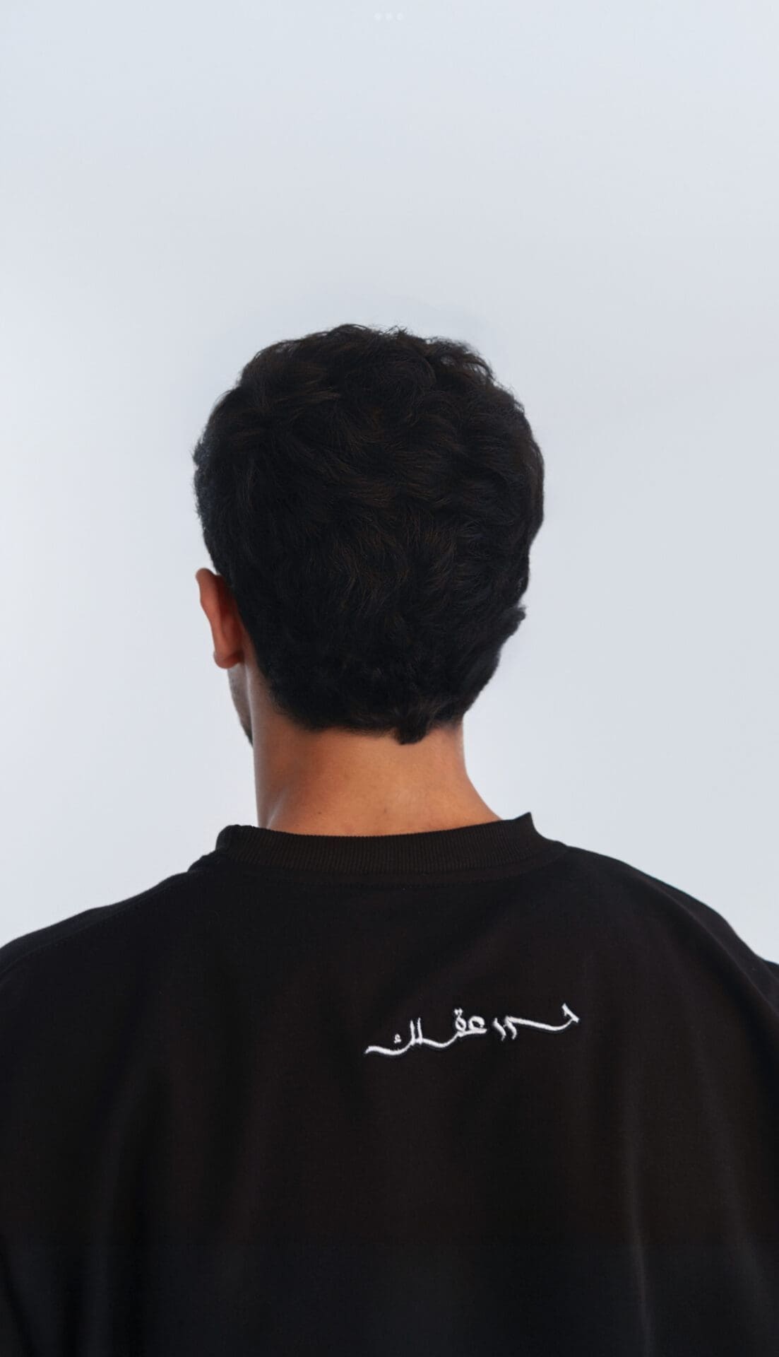 The collection merges modern silhouettes with cultural symbolism. The sculptural zip hoodie features extended sleeves and intricate embroidery representing keys, olives, tatreez, and masba7a—symbols deeply rooted in Palestinian identity. The oversized unisex tees include satin Arabic script reading “??? ????” (“Free Your Mind”) stitched across the back, while a matching kids’ version carries the same message scaled for younger voices. The Asli Ana cap ties the line together with bold embroidery and silver ring details, offering a streetwear-inspired finishing touch that bridges fashion and resistance.