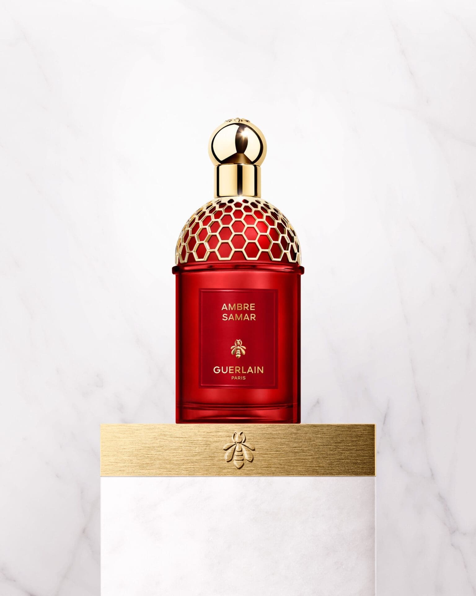 Crafted by Guerlain’s Director of Perfume Creation, Delphine Jelk, Ambre Samar is a chiaroscuro composition that glows from within. The fragrance opens with an amber accord that is at once enveloping and radiant, composed of golden vanilla and a honey note so realistic it seems to shimmer on the skin. This pairing pays homage to Guerlain’s emblematic bee, a subtle yet evocative signature of the house.
