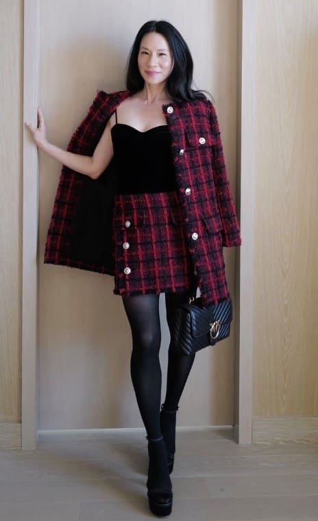 Lucy Liu: Iconic Tweed in Red One Press Appearances