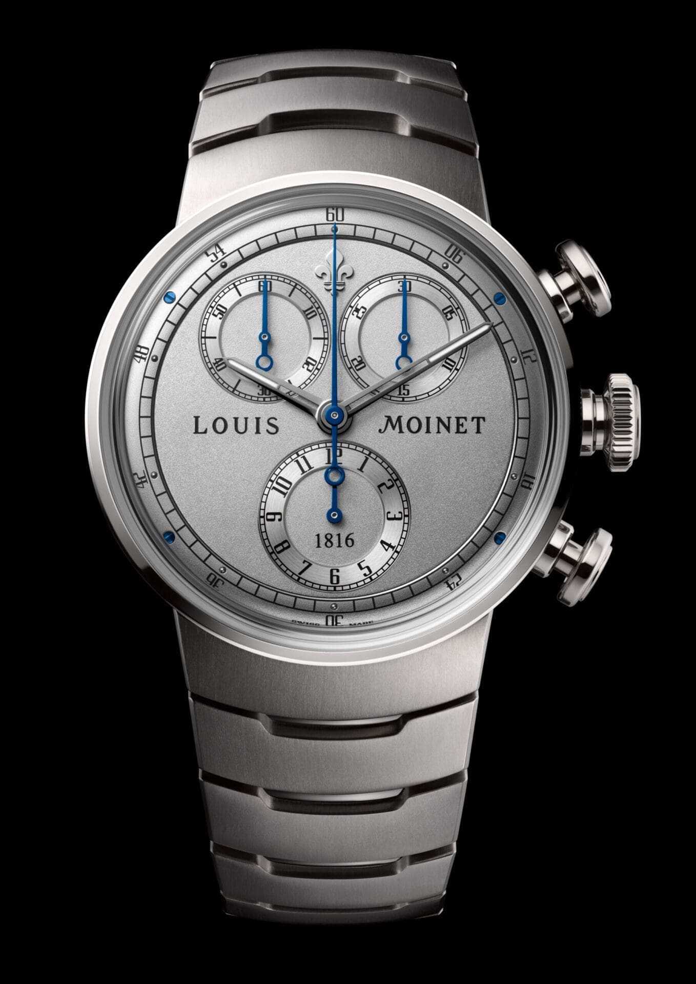 The rhodium dial mirrors Moinet’s original functional architecture, with a central chronograph hand flanked by a 30-minute instantaneous totaliser and small seconds at the top, and a 12-hour counter below. Every detail speaks to precision: bead-blasted surfaces, engraved markings, blued-steel hands, and luminescent-tipped openworked hour and minute hands. Ten blackened nickel cabochons and four blued-steel screws complete the intricate 23-part dial, crowned by a fleur-de-lys at twelve o’clock in homage to Moinet’s birthplace, Bourges.