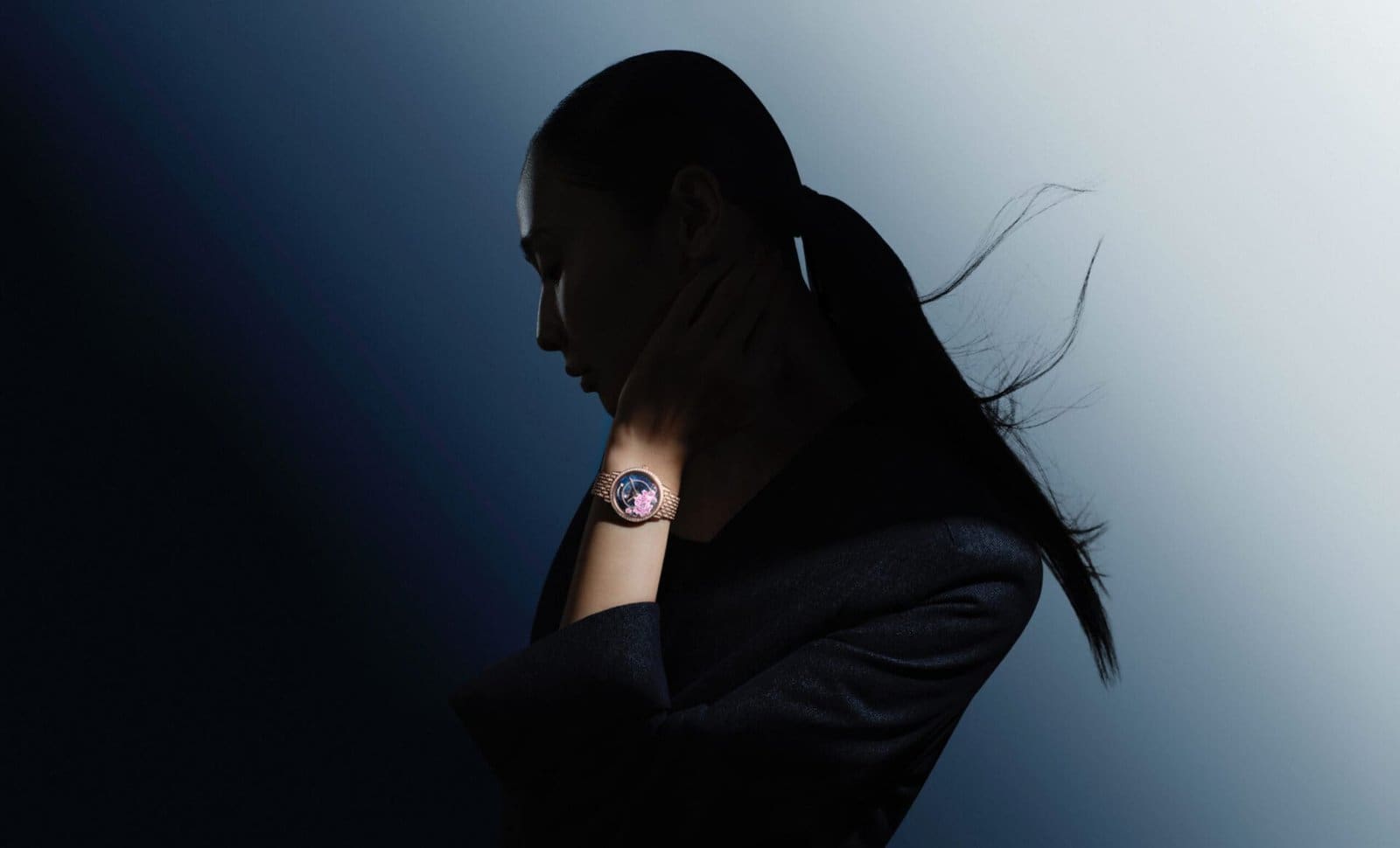 This year’s update is presented in two pink gold (18k) variations: one adorned with blue peonies and the other with pink. Both versions feature three intricately layered discs. The top layer, crafted from transparent sapphire, serves as the artist’s canvas, where nine lacquer shades bring pink peonies to life, and twelve shades illuminate the blue. Every stroke is painted by hand, requiring up to 110 hours of precise, uninterrupted artistry. Painted on both sides of the dial, the blooms create depth, dimension, and photo-realistic delicacy.