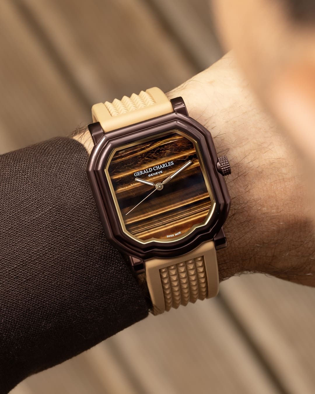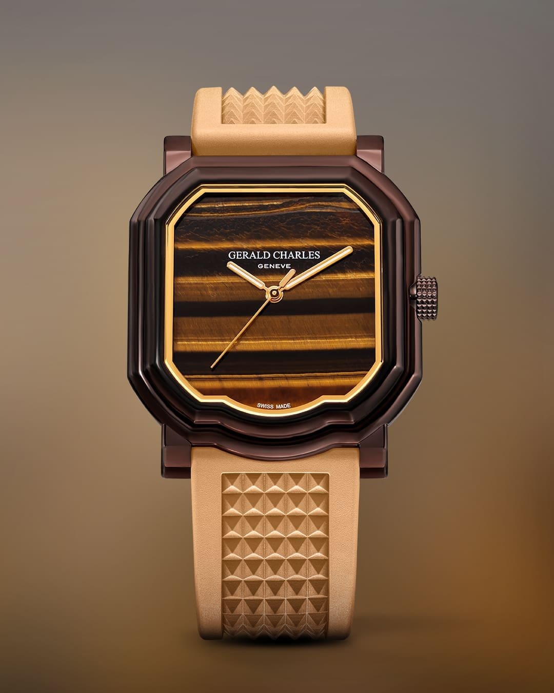 Gerald Charles takes a daring approach with this edition, forgoing indices and minute tracks to allow the natural beauty of the stone to dominate. The design ethos, described as “minimal baroque,” juxtaposes the richness of baroque-inspired architecture with the simplicity of a minimalist dial. The result is a striking visual statement: a watch both expressive and understated.