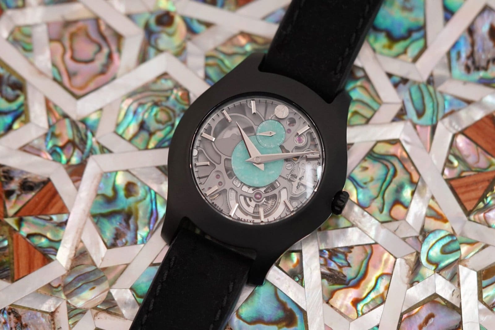 Dial options reflect two distinct philosophies: technical transparency and artistic expression. A pure sapphire dial highlights the architecture of the movement with minimalism and clarity, while artistic versions incorporate stone inlays such as mother-of-pearl or amazonite. These natural materials introduce a tactile dialogue between art and mechanics, elevating the timepiece beyond functionality into a wearable work of art.