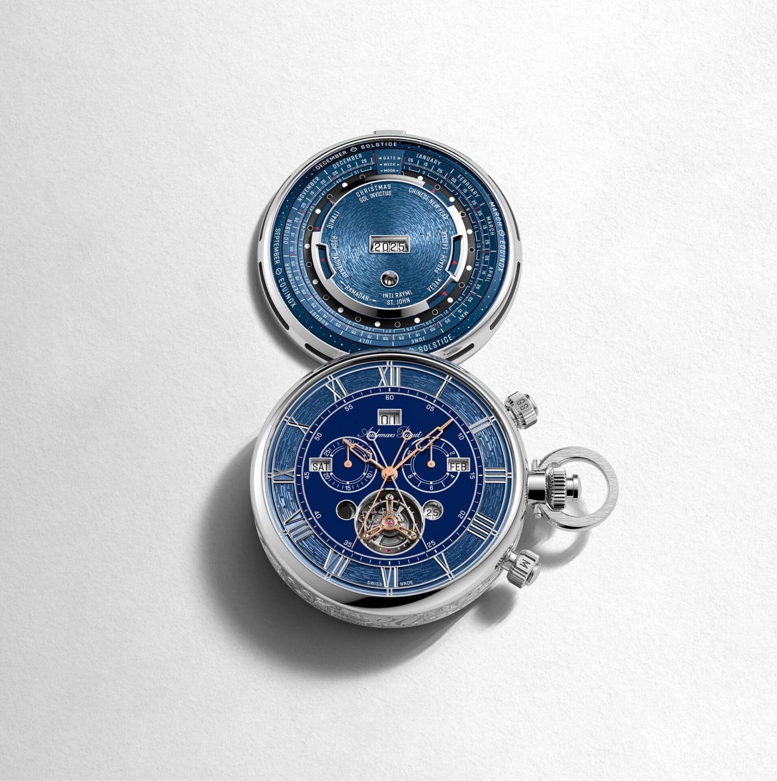 The introduction of the Universal Calendar marks a conceptual breakthrough. Visible within the caseback, this independent mechanical system gathers solar, lunar, and lunisolar cycles into a panoramic display. Cultural celebrations and celestial markers unfold across a 360-degree tableau, linking solstices, equinoxes, moon phases, and global traditions within a single coherent mechanism.