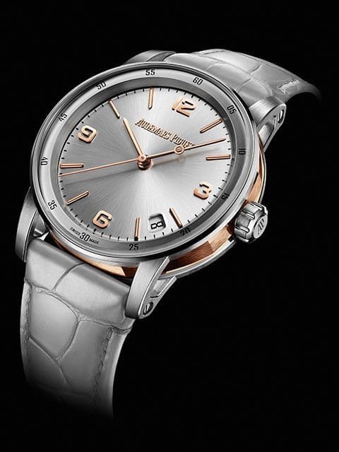 Two-tone gold cases are extremely rare in the history of Audemars Piguet’s wristwatches. Out of the 550 wristwatches produced and sold between 1882 and 1969, only eight examples combined two types of gold. The blend of white and pink gold was particularly rare, with only one wristwatch recorded in the Manufacture’s archives before 1978. Although this combination has become more prevalent today, it remains a distinct symbol of refinement and elegance.