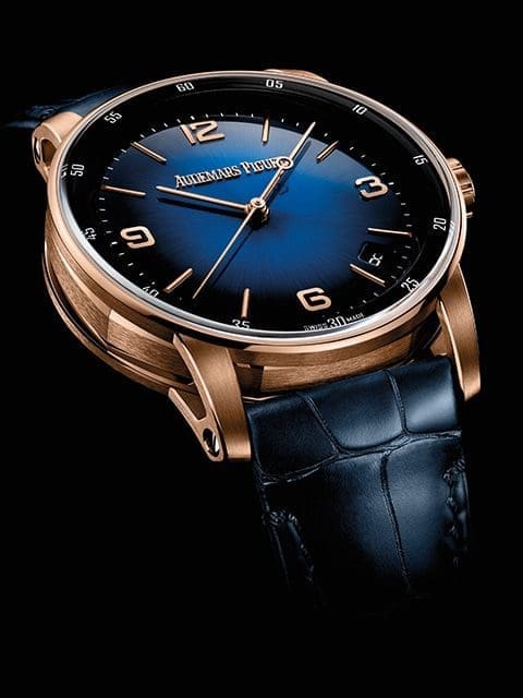 The dials’ artistry is enhanced by the watch’s extra-thin bezel and double-curved glare-proofed sapphire crystal. Playing with depth and light, this complex glass brings forward the detailed work adorning the dials, including the applied polished Audemars Piguet gold signature realised in galvanic growth.