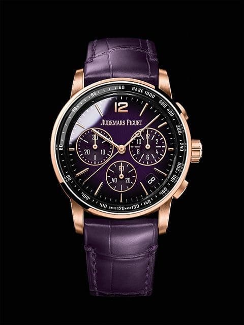 Bringing together the calm stability of blue and the intensity of red, the two purple dials suggests uncompromising elegance. The purple of the dials are contrasted by their 18-carat pink gold cases and the pink gold applied hour-markers and hands.