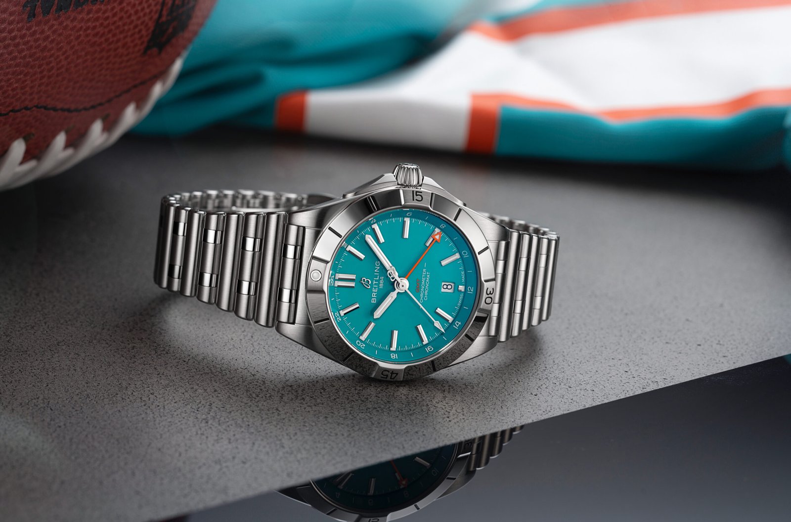 The new Chronomat Automatic GMT 40 NFL Team Editions are designed for those who carry their team spirit across time zones. Each watch embodies the colors and identity of an individual franchise, from the rich Montana Red of the San Francisco 49ers to the unmistakable Midnight Green of the Philadelphia Eagles. The GMT hand highlights secondary team shades, and every caseback is engraved with the official team logo, ensuring each timepiece serves as a personal emblem of loyalty. Practical yet elegant, its 40 mm stainless steel case, 200-meter water resistance, and COSC-certified movement balance utility with unmistakable style.