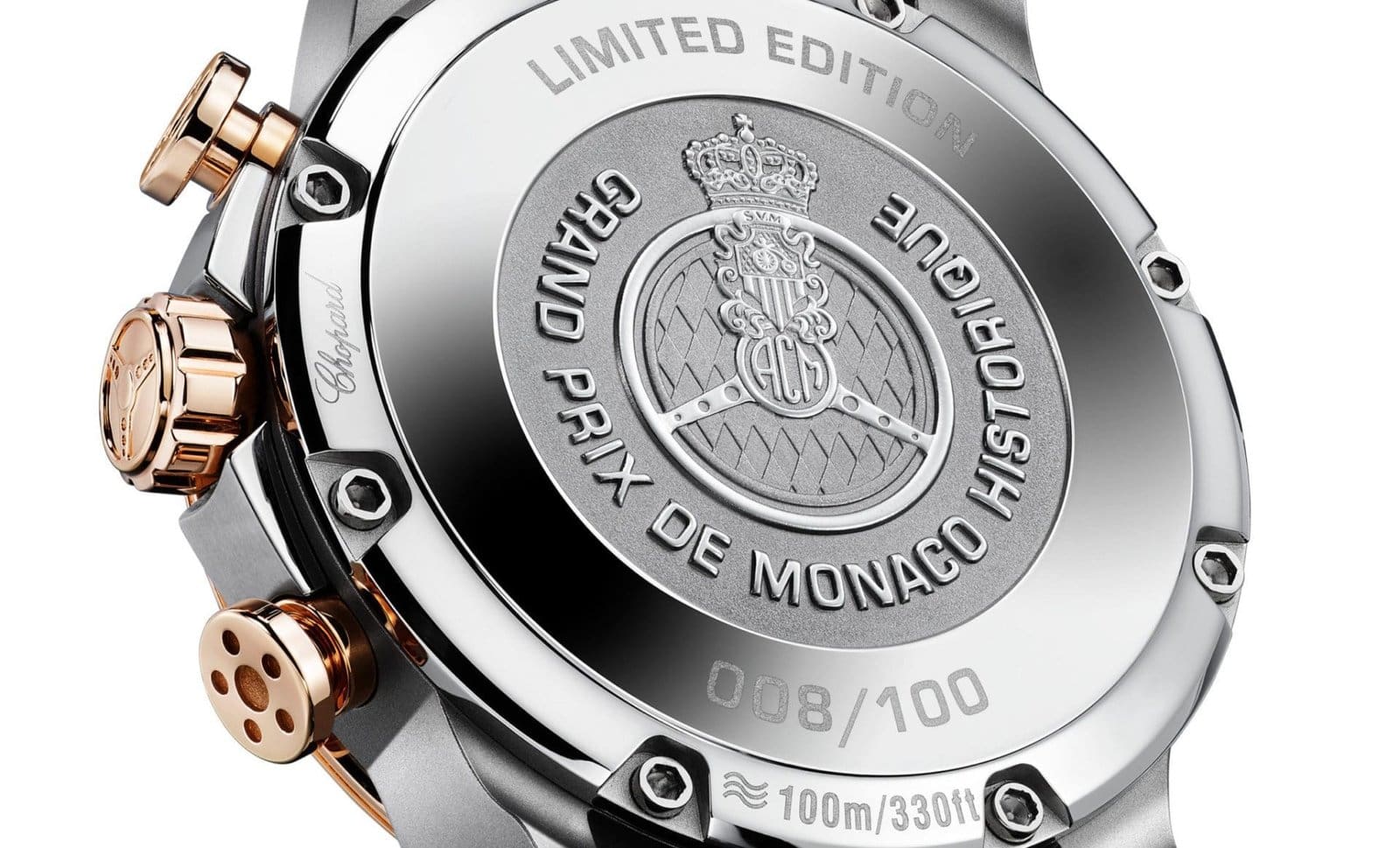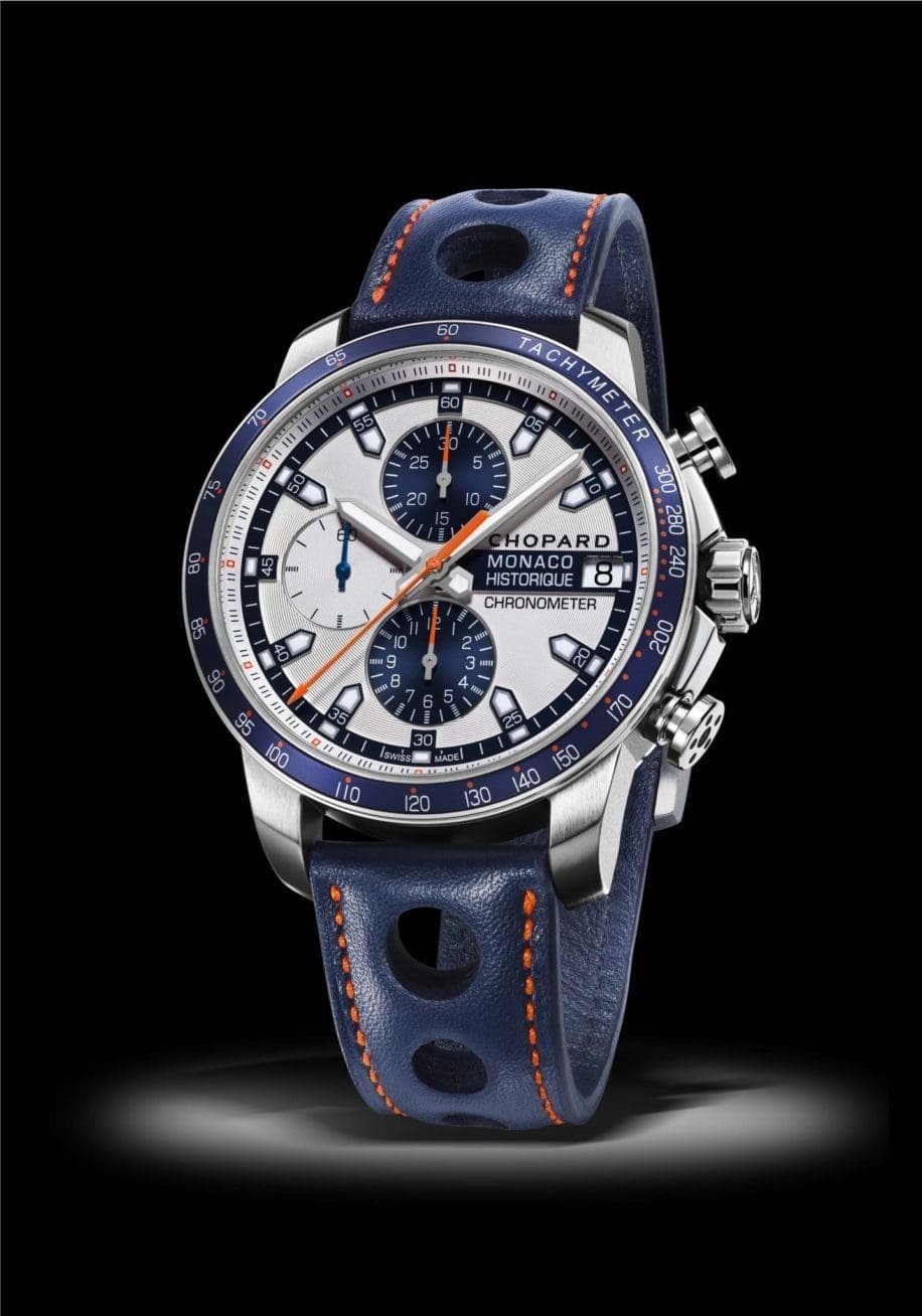 As it has done for each of the past editions of this historic race, Chopard created and dedicated the 44.5 mm Grand Prix de Monaco Historique 2018 Race Edition watch. Limited to just 250 pieces, it features bead blasted titanium and stainless steel, a mechanical chronograph movement with automatic winding, a blue and orange barenia calfskin bracelet or on a blue and orange NATO bracelet. Limited to just 100 pieces is sub-variant in bead blasted titanium, 18-carat rose gold and stainless steel.