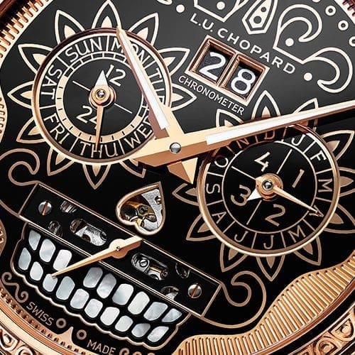 All the patterns on the case, bezel and dial are hand-engraved by Chopard’s artisans.