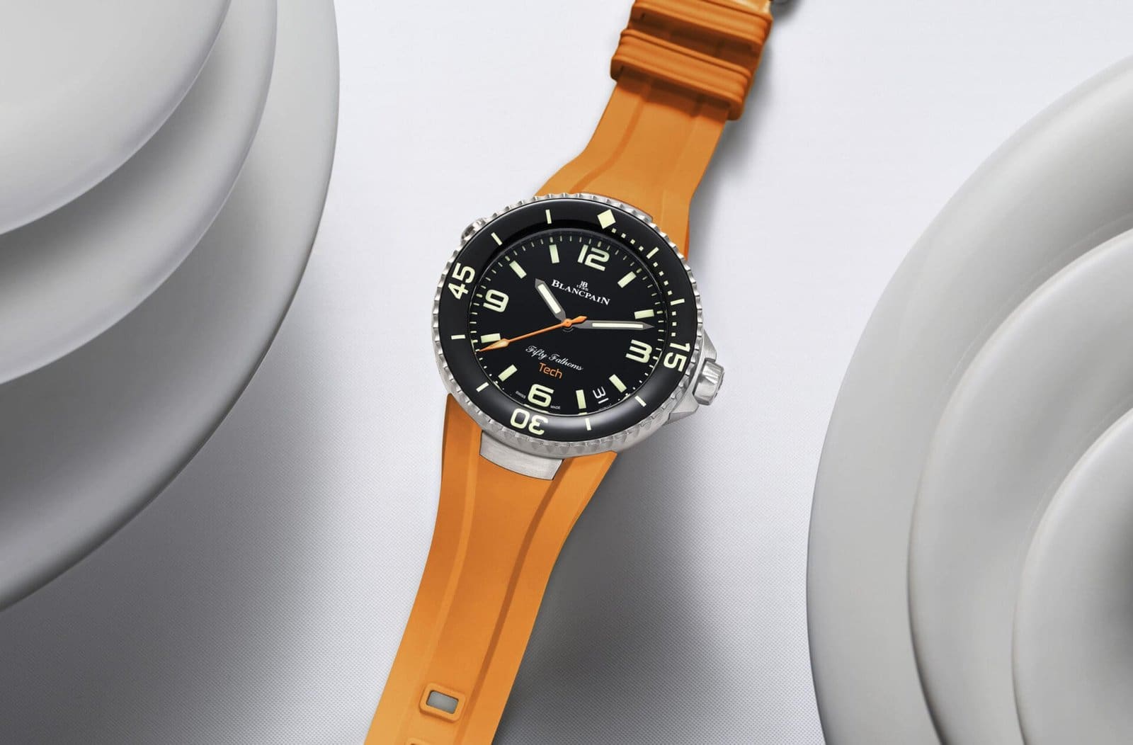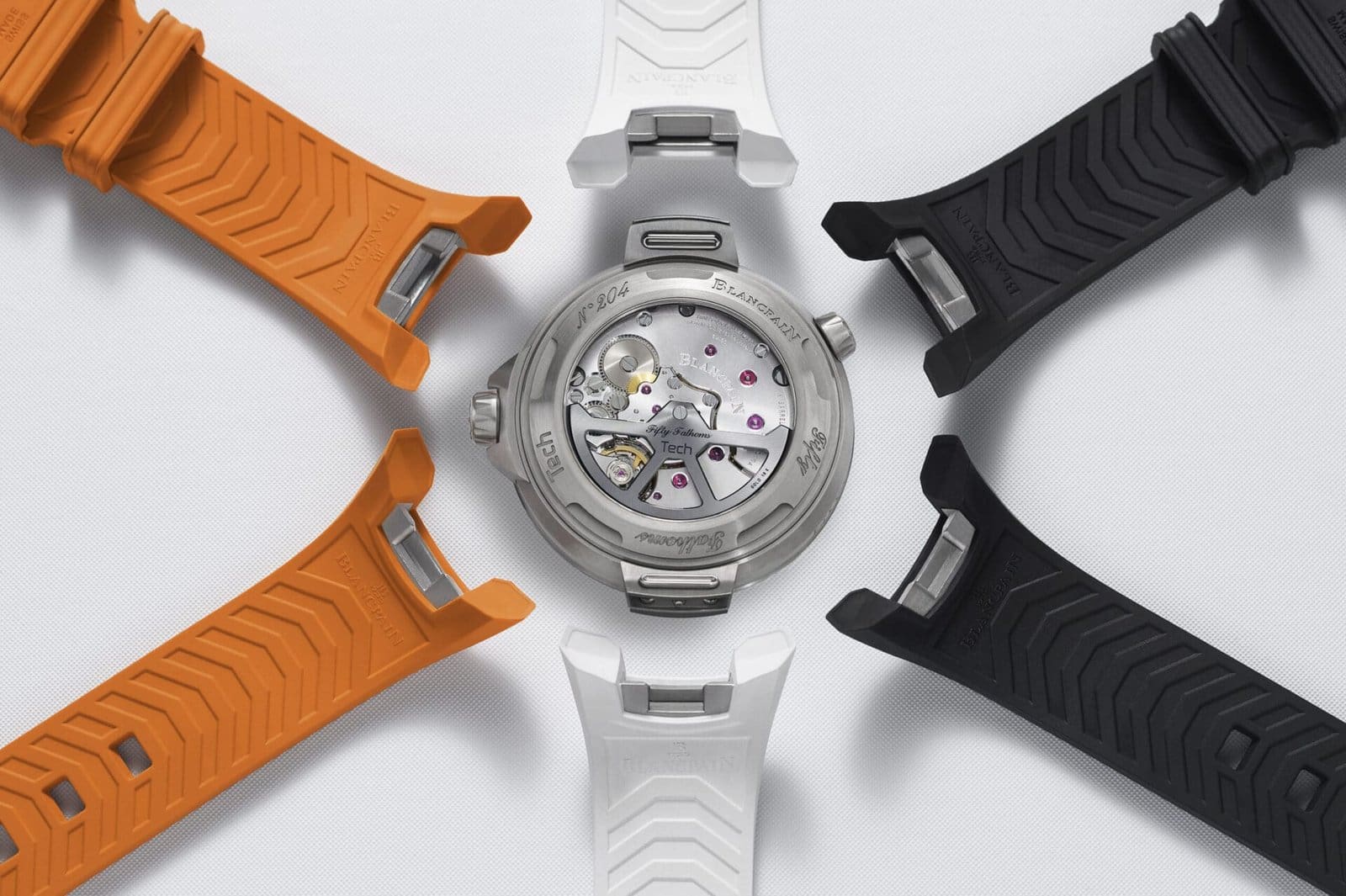 In a bold move for 2025, Blancpain pairs this functionality with fresh flair. New interchangeable rubber straps in vivid orange, white, and classic black enable wearers to switch styles instantly, thanks to a tool-free central lug system. The straps are available in multiple lengths to accommodate both wetsuit wear and everyday wrist comfort, blending practicality with personalization.