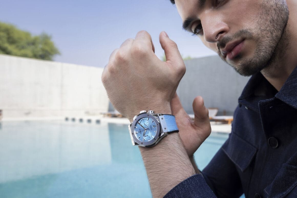 The two new timepieces are inspired by the mesmerizing hues of the UAE seas, capturing the interplay of sunlight on water. Designed to celebrate the nation’s natural beauty and rich heritage, these watches embody Hublot’s signature craftsmanship and dedication to innovation.