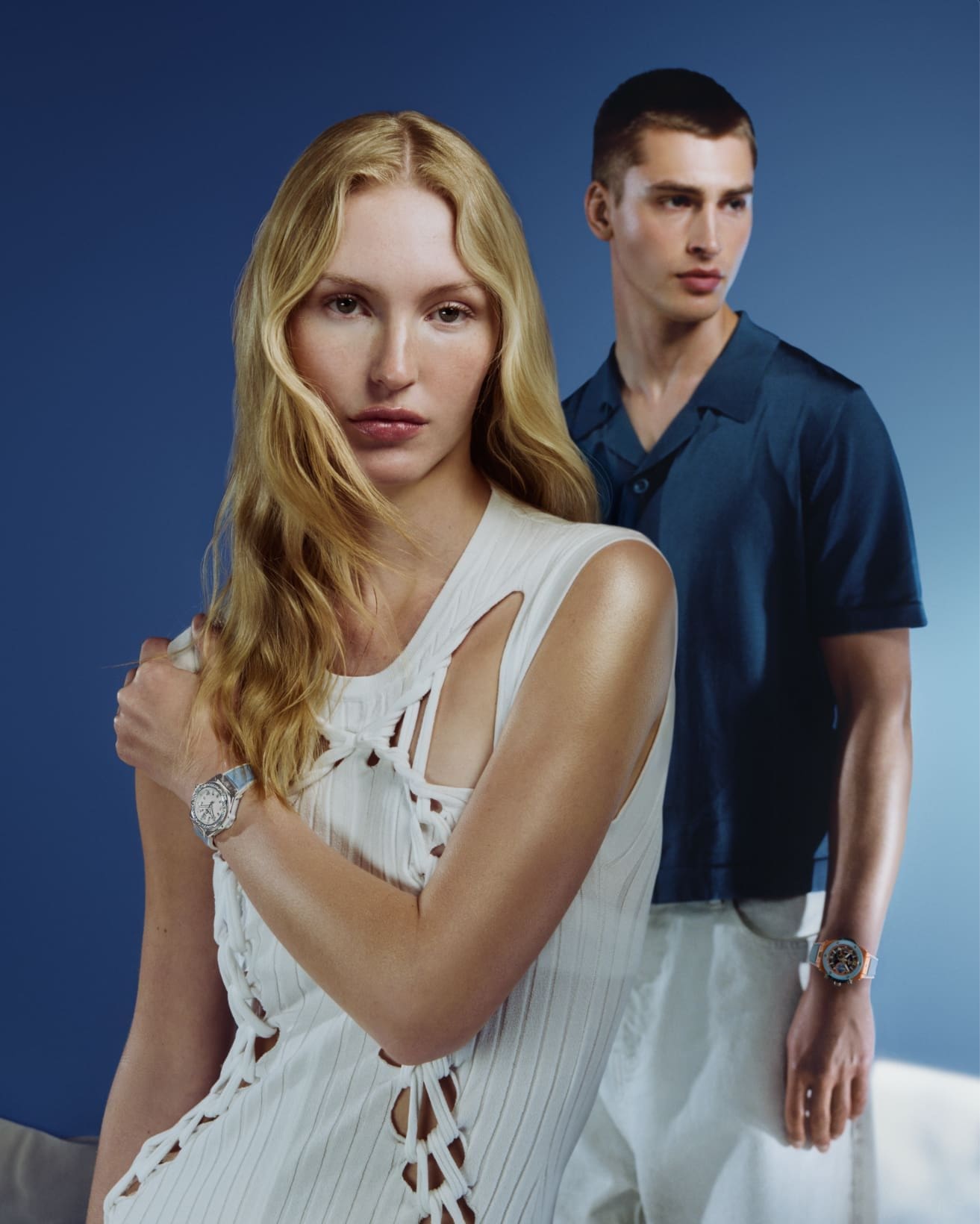 Crafted in Hublot’s signature high-tech ceramic, the micro-blasted orange case captures the glow of golden hour, while the azure bezel reflects the infinite expanse of the sea. Engineered to move from beachside ease to night-time glamour, the Unico Summer 2025 comes with three interchangeable rubber straps — in sky blue, deep navy, or citrus orange — all easily swapped via Hublot’s patented One-Click system. Its lightweight build and 100m water resistance make it the perfect companion for spontaneous summer escapades.