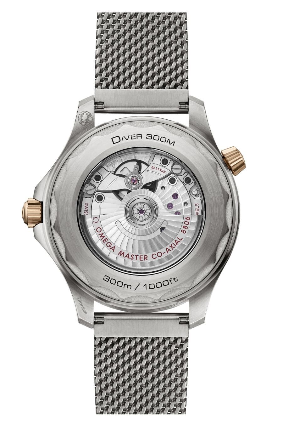 - Lightweight, corrosion-resistant, and durable, Titanium is the choice for the 42 mm brushed case and the mesh bracelet.