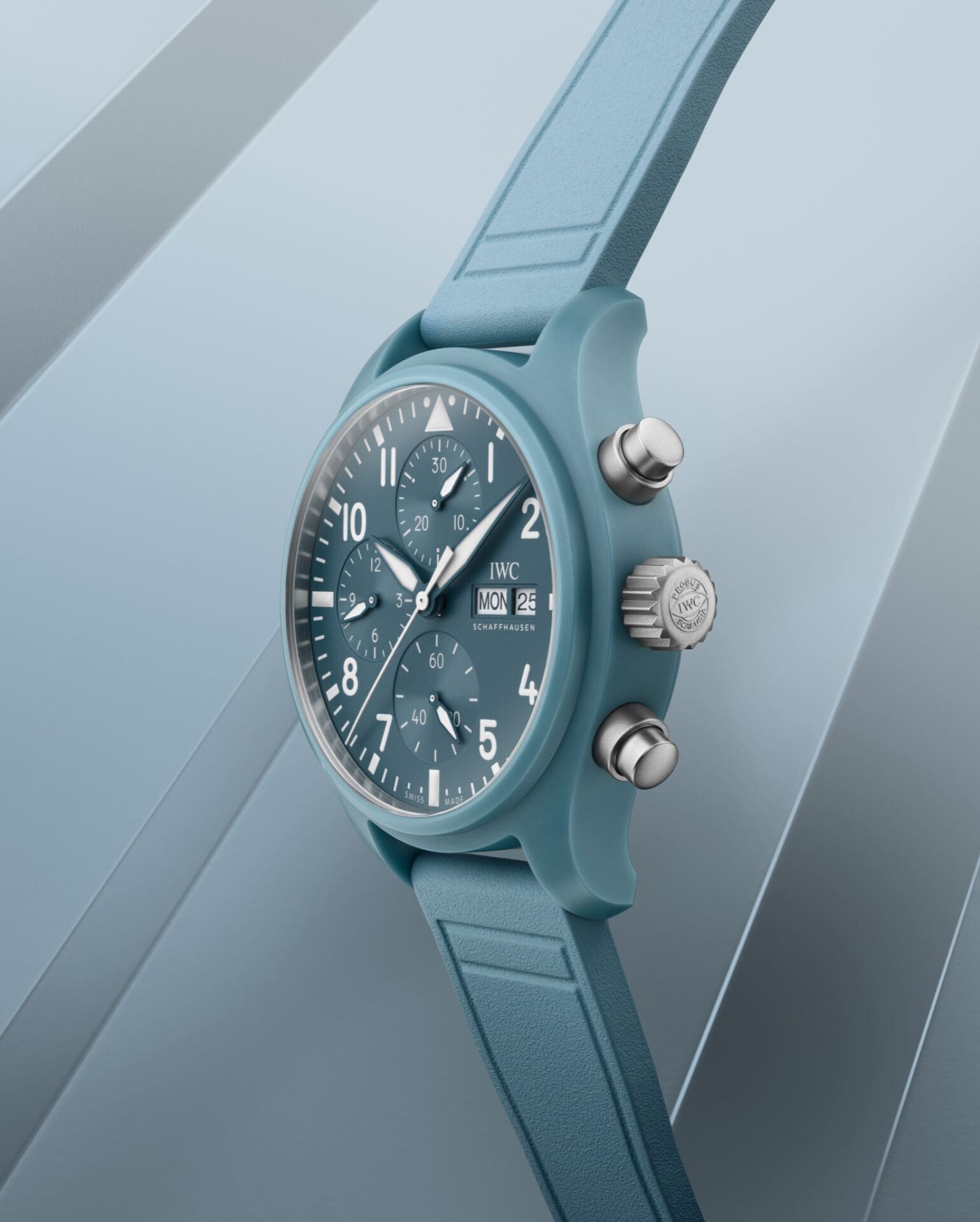 Limited to just 1,000 pieces, the ceramic version (Ref. IW389409) brings together a light blue ceramic case, matching dial and rubber strap, and luminous blue hands. The integration of Pantone® collaboration ensures the hue is unique, emotionally resonant, and technically challenging to produce. The bold yet refined aesthetic marks a new chapter in IWC’s tradition of fusing technical performance with compelling storytelling.