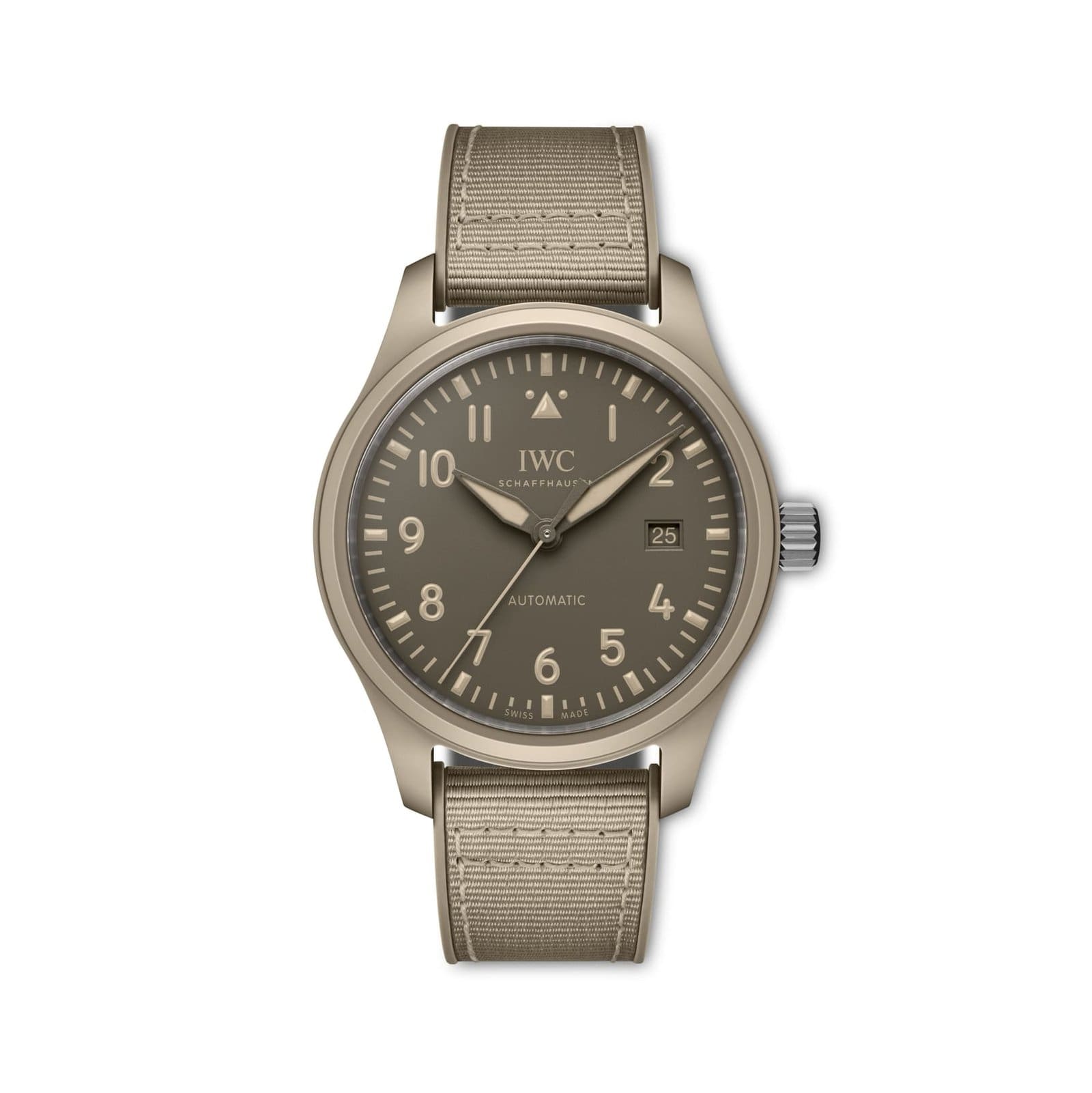 The watch’s ceramic case is a testament to IWC’s nearly four decades of ceramic expertise. Made from zirconium oxide and metallic oxides, the ceramic blend achieves its distinct hue through a meticulous sintering process. Known for its extreme hardness and scratch resistance, the material stands up to the rigors of both performance and everyday wear. With this newest reference (IW328106), the Mojave Desert color reaches its most wearable form yet, compact at 41mm without sacrificing its bold character.