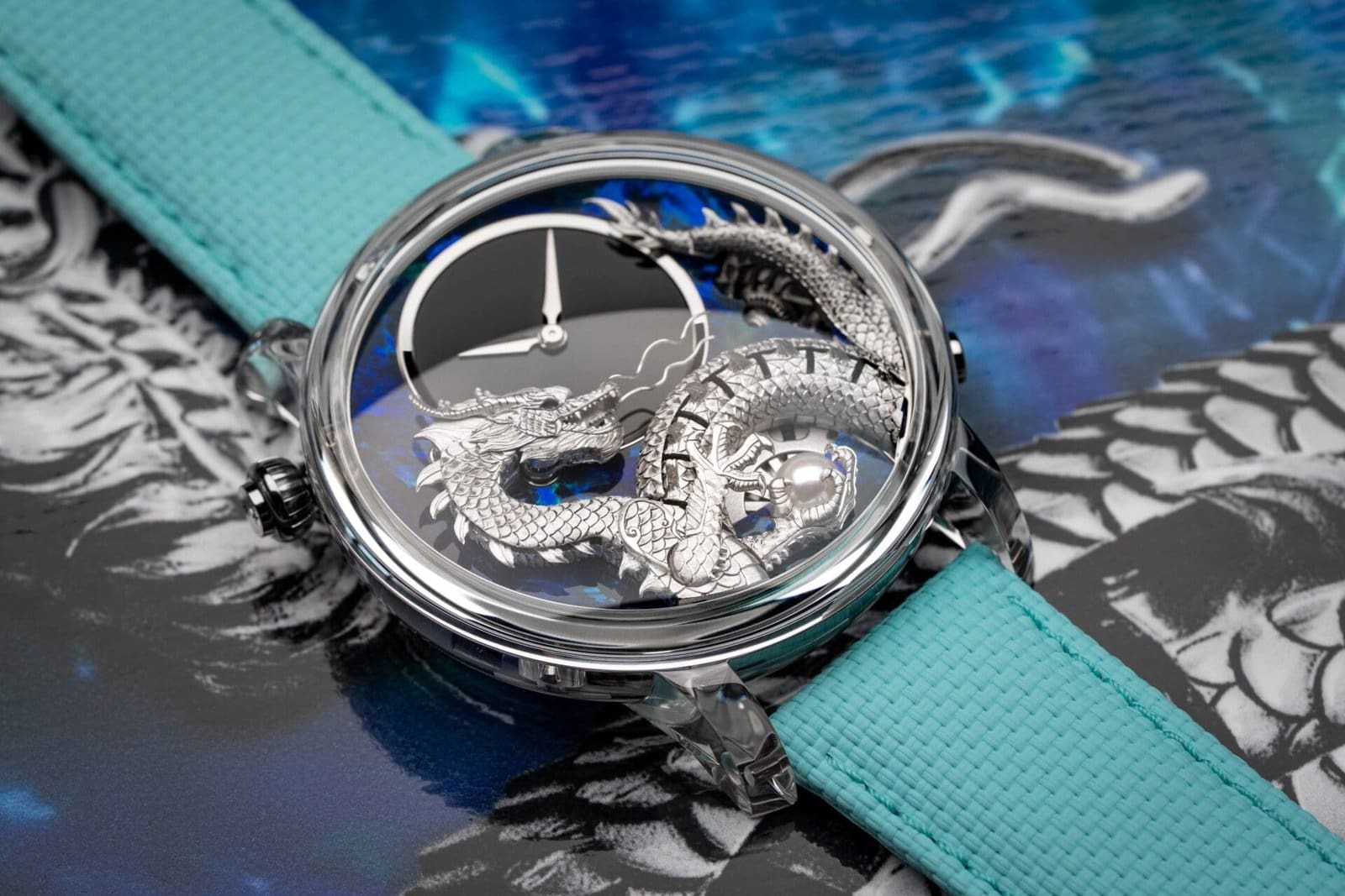 The dragon, a powerful emblem deeply rooted in Asian culture, forms the emotional and visual core of the watch. Its presence also echoes the historic journeys of Pierre Jaquet-Droz to Asia in the eighteenth century, while drawing modern inspiration from fantasy artist John Howe, long associated with the brand. Coiled within the lower section of the case, the dragon is not merely decorative—it is alive, animated through one of the most complex automaton sequences ever conceived in modern haute horlogerie.