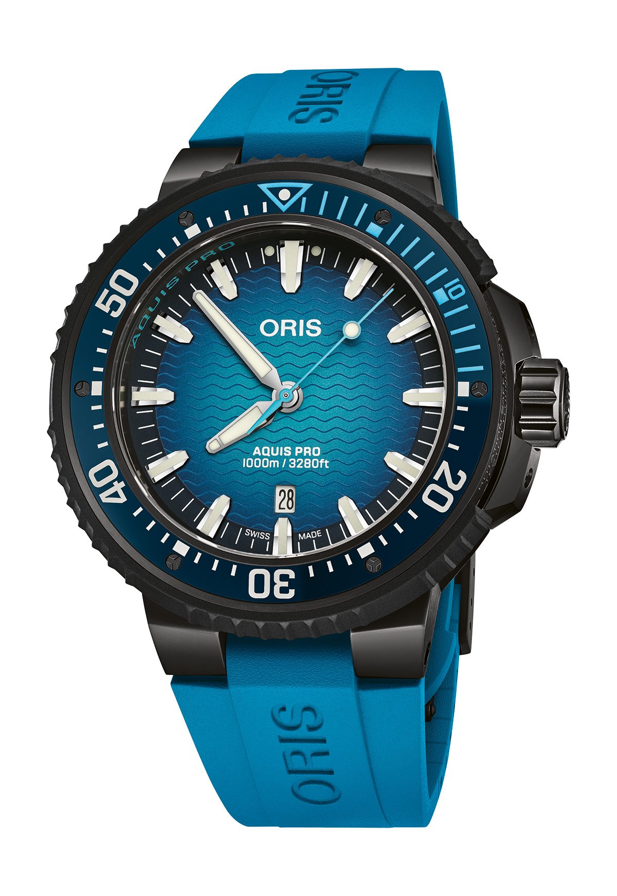 For professionals of the deep, the AquisPro 1000M stands as a technical powerhouse. Engineered for high-performance diving, it features a titanium case, 1,000-meter water resistance, and Oris’s patented Rotation Safety System—ensuring maximum reliability in extreme underwater conditions. Its blue gradient wave dial captures the spirit of the ocean, while the durable rubber strap ensures comfort and security during the most demanding dives.
