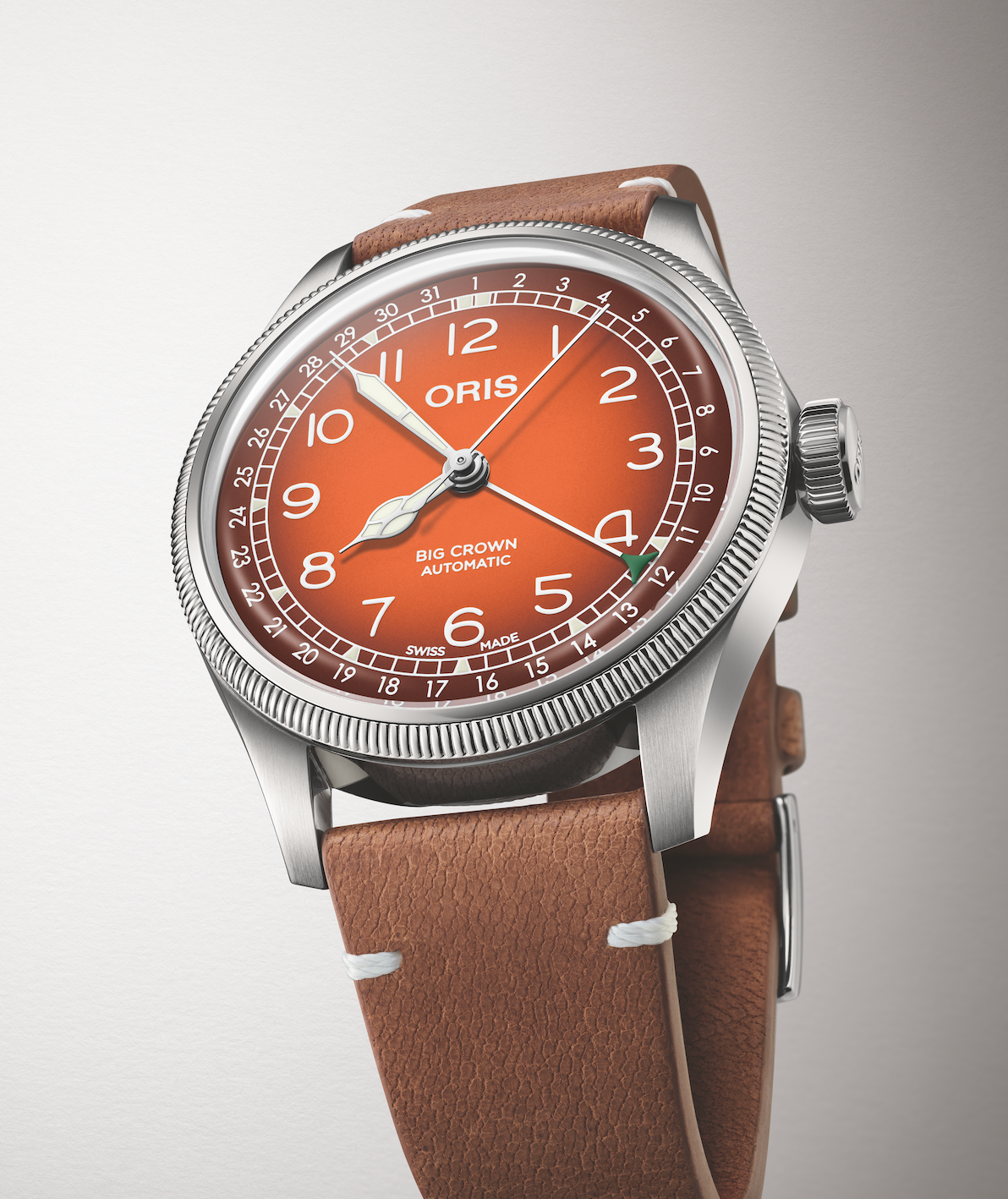 Leading the collection is the Big Crown x Cervo Volante, a collaboration that perfectly encapsulates Oris’s eco-conscious philosophy. Crafted in partnership with the sustainable leather brand Cervo Volante, the watch features a burnt maple gradient dial paired with a deer leather strap, each naturally tanned using environmentally friendly methods. Powered by the Calibre 754 with Oris’s signature pointer date hand, it is a quiet yet powerful reminder that luxury can coexist with respect for nature.