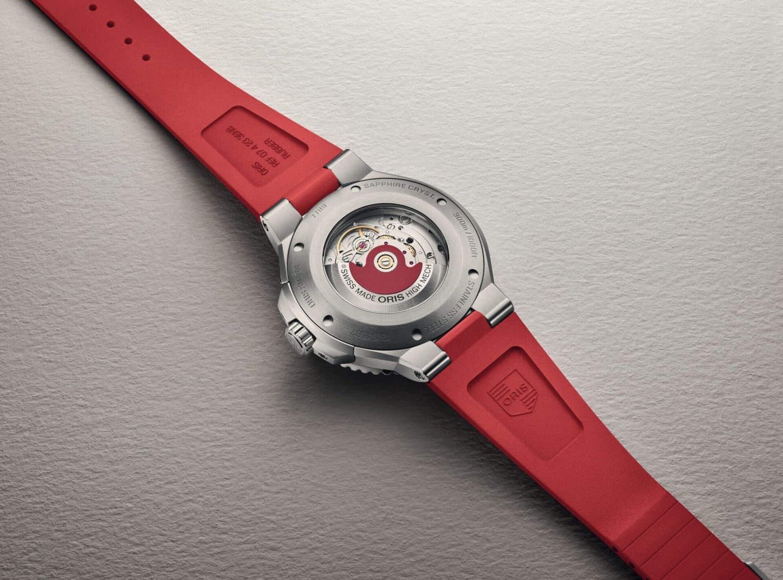 Internally, the Aquis Date Relief is powered by the Oris 733 automatic movement. Visible through a see-through mineral glass case back, the Swiss Made calibre offers central hours, minutes, and seconds hands, along with a date display at 6 o’clock. The movement operates at 28,800 vibrations per hour, features 26 jewels, and delivers a power reserve of up to 41 hours—highlighting its reliable and precise engineering.