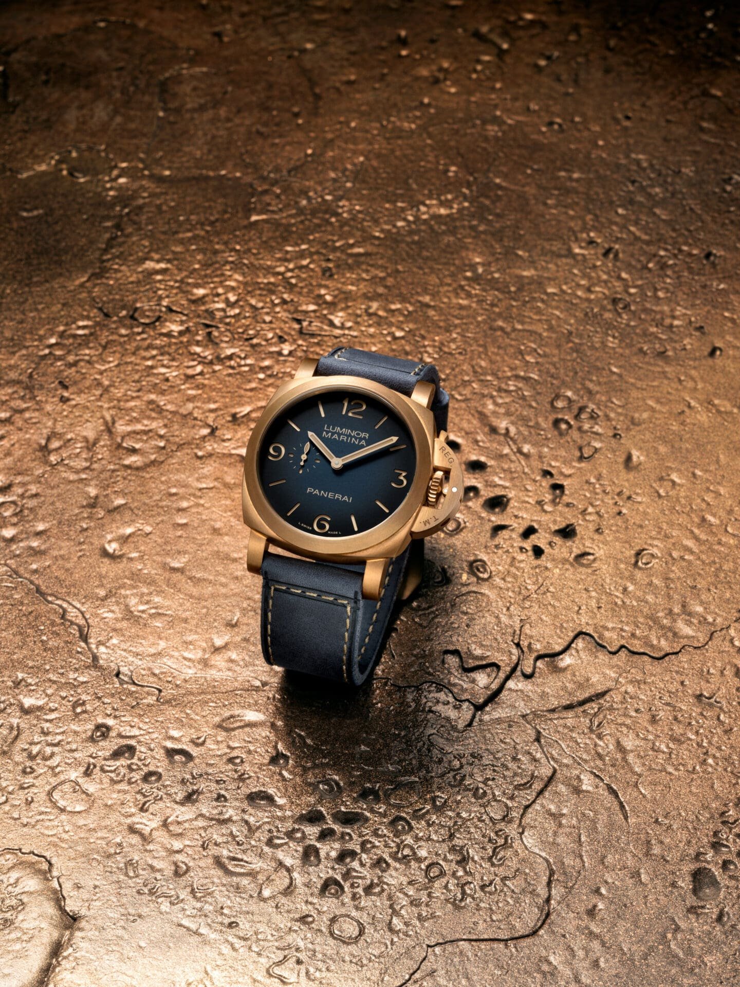 What sets Panerai’s bronze apart is its unique composition, designed to develop a living patina over time. When new, the case carries a warm, golden hue, gradually evolving as it interacts with air, moisture, and wear. This natural transformation ensures that no two pieces will age in exactly the same way, allowing the watch to become a personal object shaped by the wearer’s own journey.
