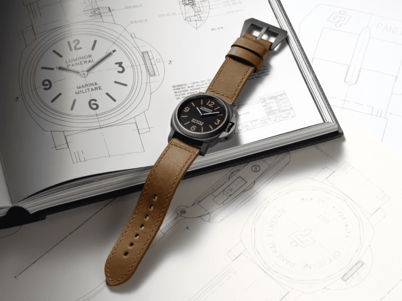 At the heart of this celebration lies the new Luminor Marina Militare PAM05218, a modern interpretation of the legendary 1993 reference 5218-202/A. Presented in a bold 44mm DLC-coated steel case, the watch embraces the spirit of utilitarian authenticity with caramel Super-LumiNova® recreating the coveted “non-matching” dial effect. Its engraved monolayer construction reflects Panerai’s devotion to craftsmanship, while the P.6000 calibre delivers a robust three-day power reserve—an emblem of both endurance and mechanical elegance.