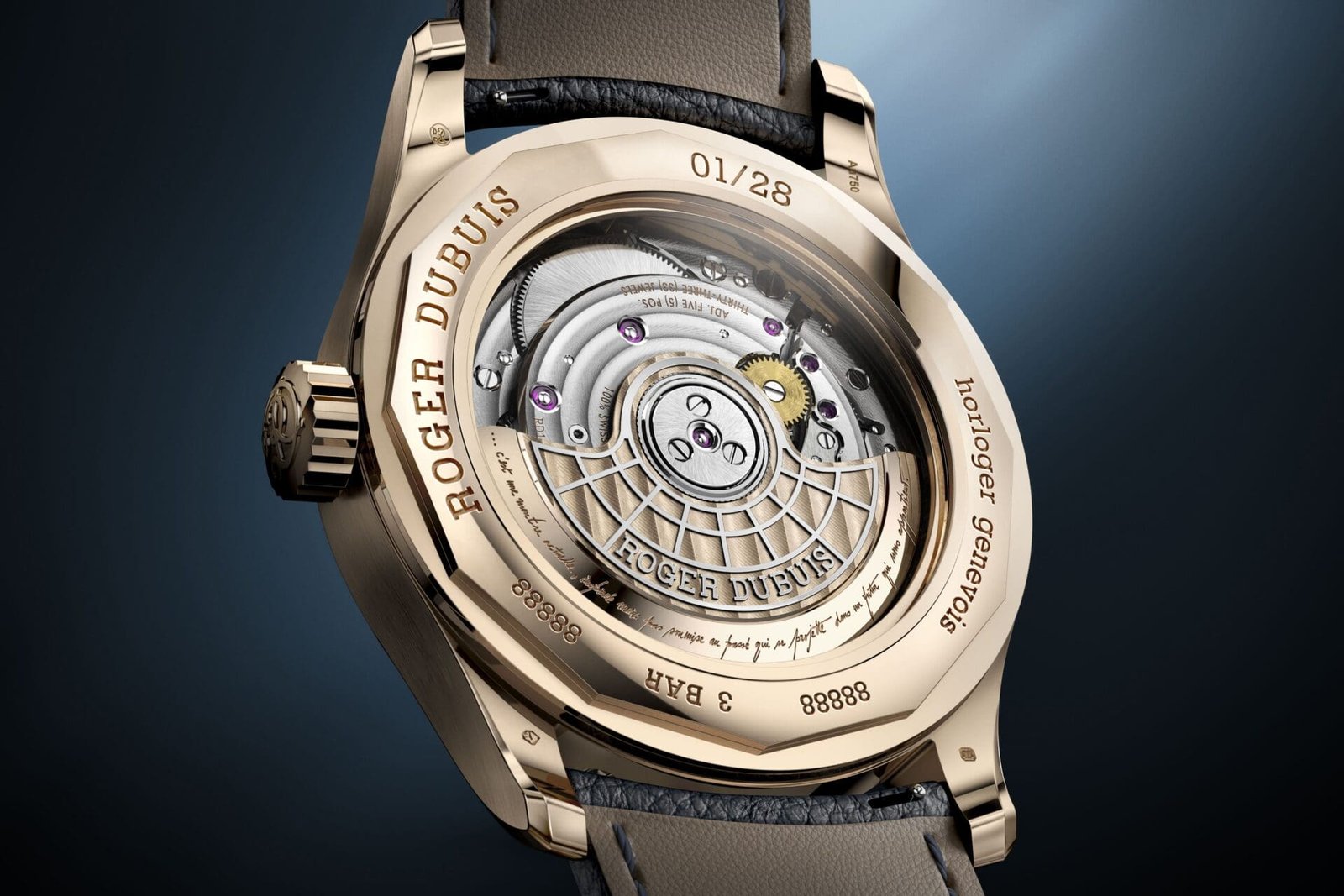 Every detail of the Hommage La Placide reinforces its role as a modern collectible. Encased in 18K pink gold and paired with a blue interchangeable leather strap, the 38 mm creation carries the Poinçon de Genève certification—a prestigious seal that Roger Dubuis has cherished since the earliest days of the Maison. Meeting today’s rigorous standards required an elevated focus on movement setting, a craft honed by the skilled artisans within the brand’s integrated manufacture.