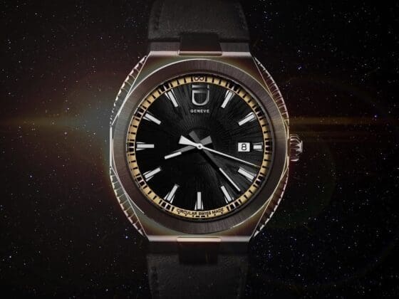 The second model is the TAG Heuer Formula 1 chronograph. Made entirely from steel, this football-inspired quartz chronograph features a notched steel bezel with a tachymeter scale. The Arabic numeral 12, in red lacquer is located at 12 o’clock. It contrasts with the opaline anthracite dial, echoing the colours of Manchester United. In striking red, the Manchester United logo positioned on the counter at 6 o’clock stands out particularly clearly. The date, meanwhile, is positioned at 4 o’clock on a black disc. The screw-down case is engraved with the Manchester United logo. This model is available with a perforated black rubber strap, ensuring a more contemporary look than ever before. Thanks to the 1/10 second hand, which completes one revolution of the counter positioned at 6 o’clock every second, this chronograph is not just a pleasure to look at, it is also one of the best value watches in the market, with accomplished finishes to honour the most prestigious of clubs, Manchester United.