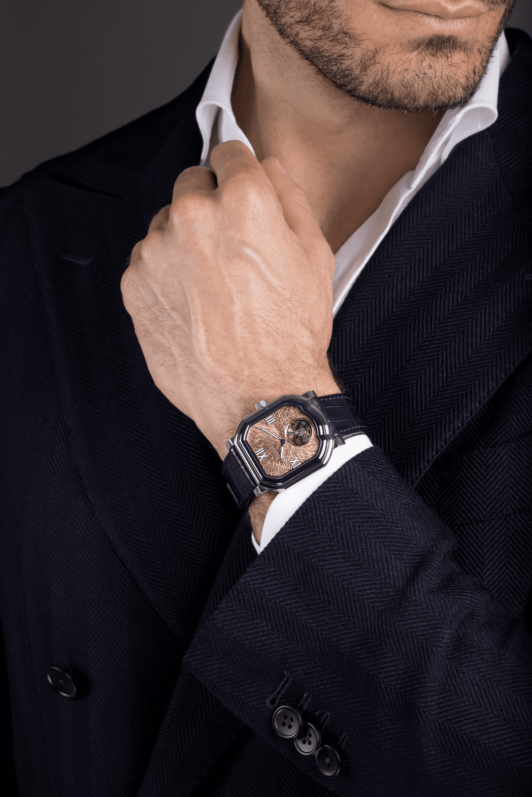 With its textured dial, hand-stitched blue alligator strap, and skeletonized tourbillon, the Maestro 9.0 Roman Tourbillon embodies both elegance and sportiness. It represents the epitome of Gerald Charles’ commitment to Artistic Creativity and Technical Mastery, making it a perfect addition to any connoisseur’s collection.