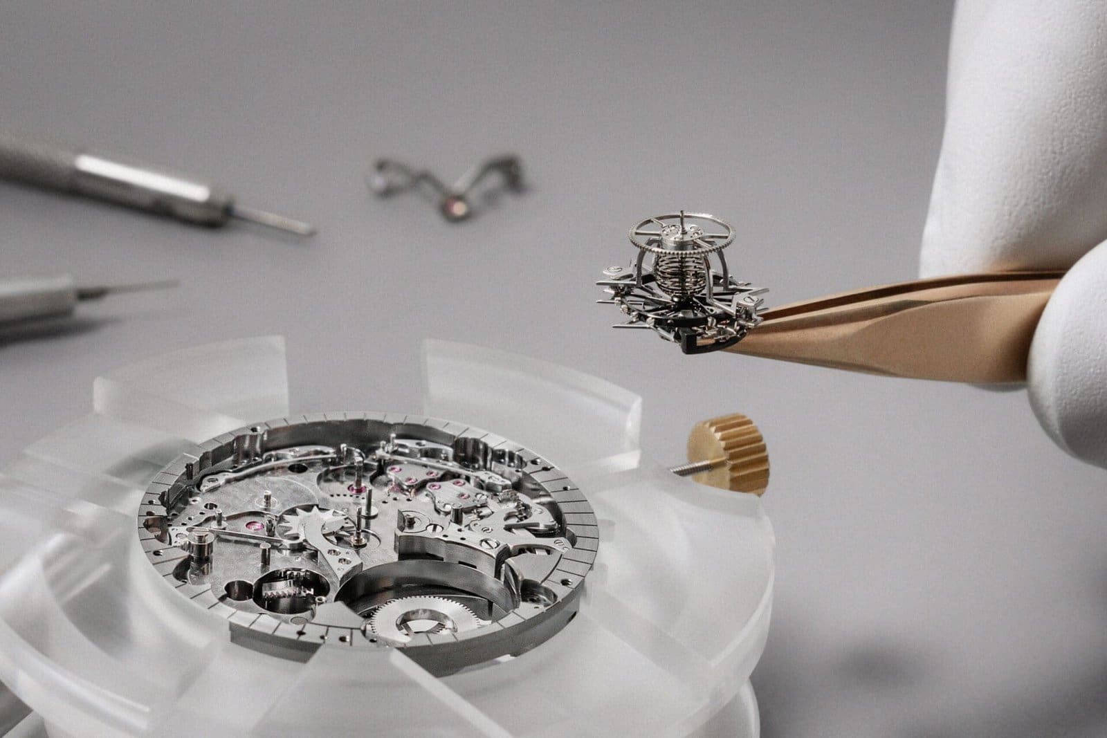 Completing the mechanical ballet is the unparalleled finishing of the movement—meticulously brought to life through hundreds of hours of artisanal skill. Every surface is attended to with obsessive detail: bridges are skeletonised and hand-drawn; wheels with bevelled spokes are individually rolled and polished; the governor bridge, with its round mirror-polishing, alone demands eight hours of craftsmanship. This level of refinement transforms technical mastery into aesthetic artistry, making each component not just functional but beautiful.
