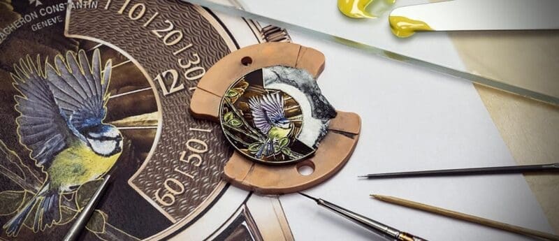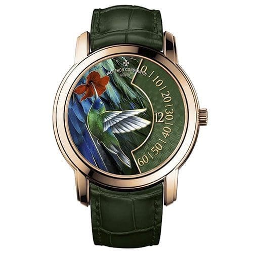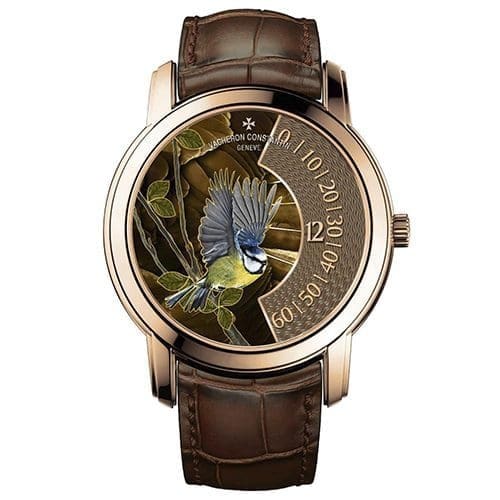 A set of four, one-of-a-kind timepieces. Each has an off-centred display of the hours along the right-circumference of the dial. This leaves space for the master enamellers to express their art of champlevé enamel. The four pieces bear witness to their skill through the representation of a hummingbird, a blue jay, a blue tit and a robin; a theme dreamed up by the Maison’s Les Cabinotiers department.