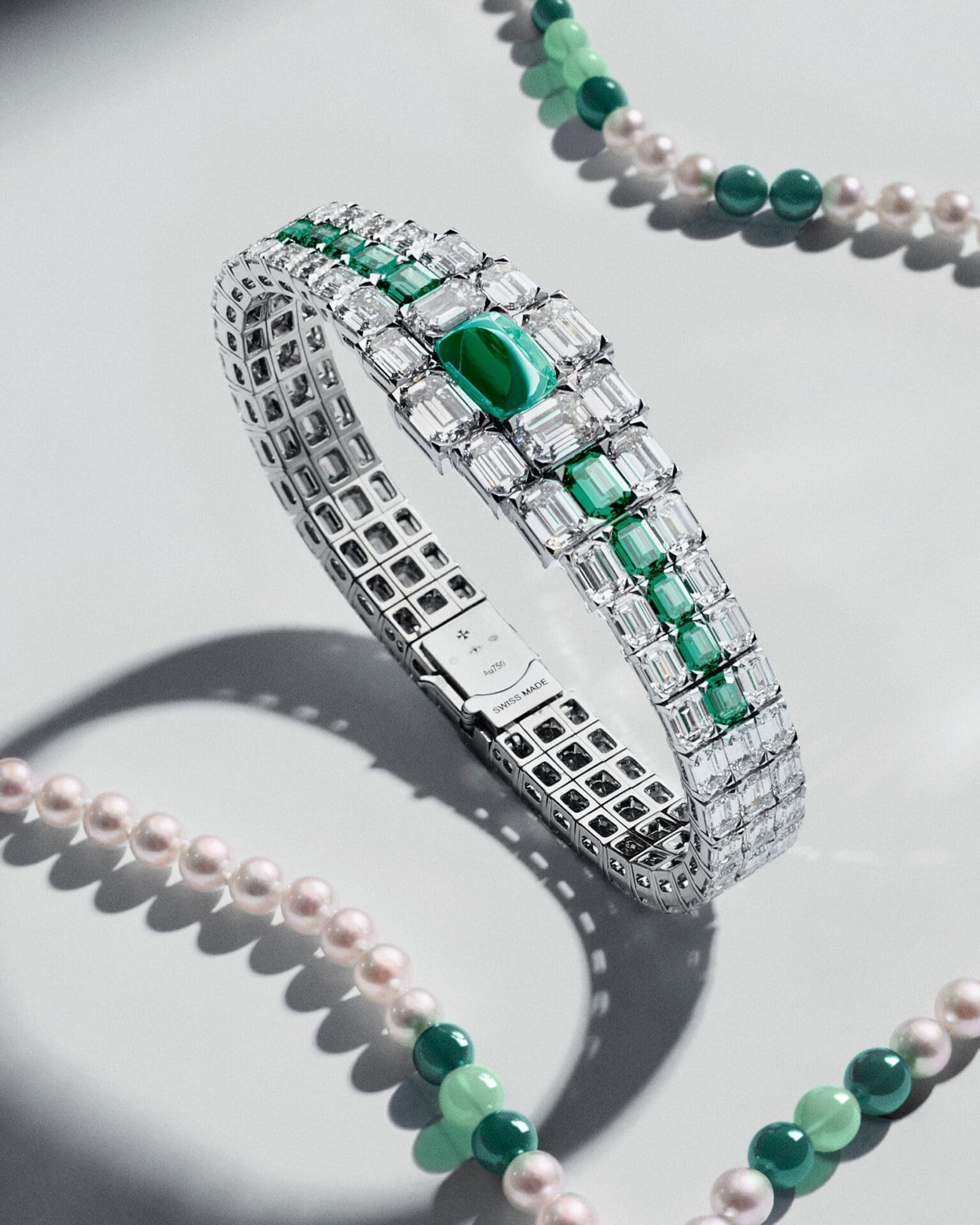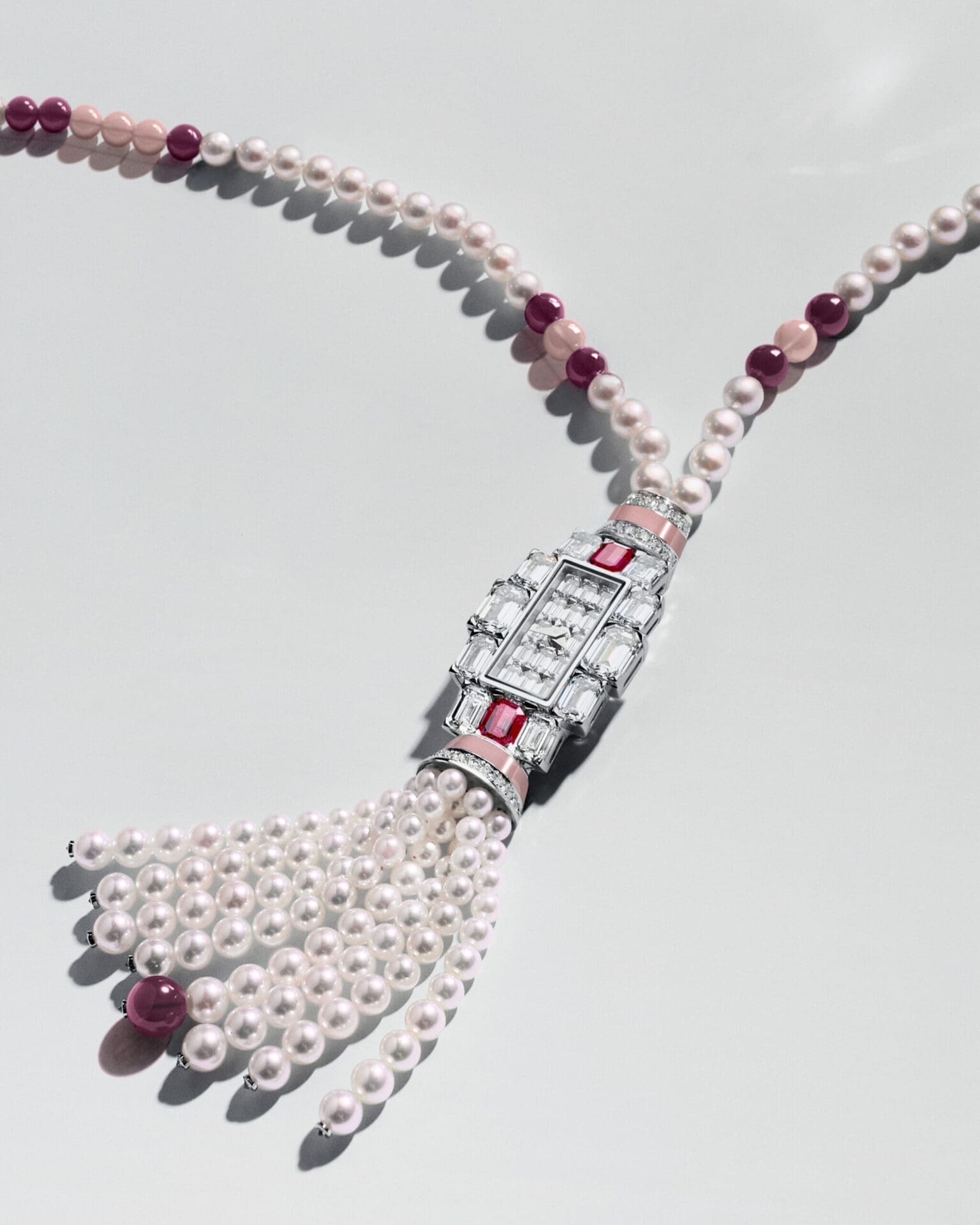 Each Grand Lady Kalla is a celebration of both time and transformation. Comprising four fully gem-set elements—a watch, jewel piece, bracelet, and sautoir necklace—it can be worn in four distinct ways, from wristwatch to pendant, adapting effortlessly to different occasions. Crafted in either 18K white gold or 950 platinum, the watch is adorned with hand-selected gemstones, Akoya pearls, and ornamental stone beads that embody the height of contemporary jewellery artistry.